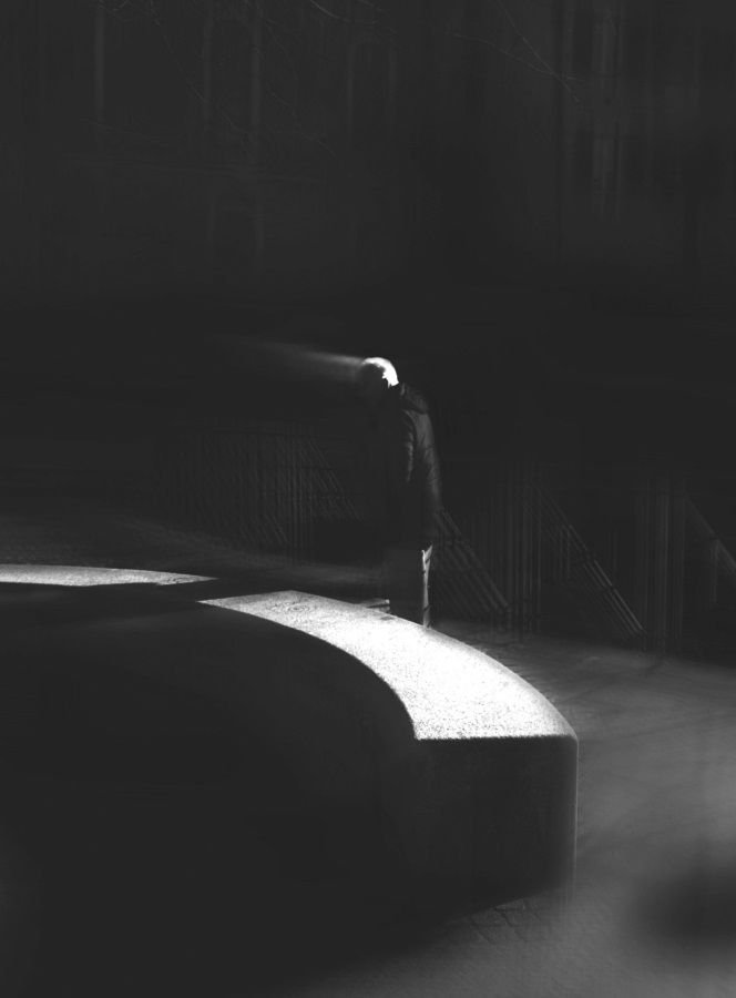 The Moment is a fraction of time that is a foundation for a visionary artist. The perfect shadow and the combinations of the white bench with the white man's hair gave me a momentum of creativity. Everything is followed by certain incomprehensible cosmic laws.