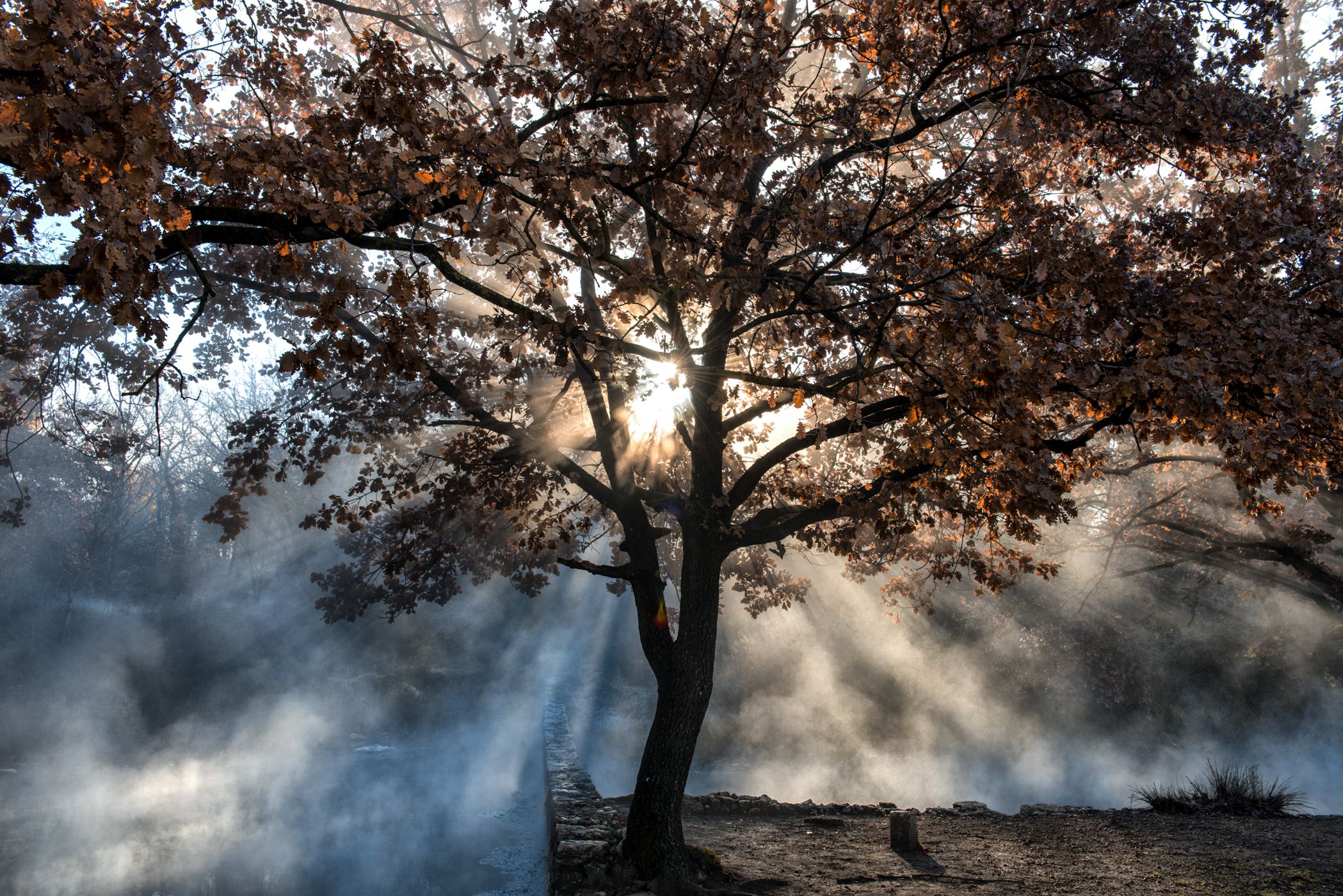 A fairy sunset over an ancient roman hot spring in the hearth of Tuscany