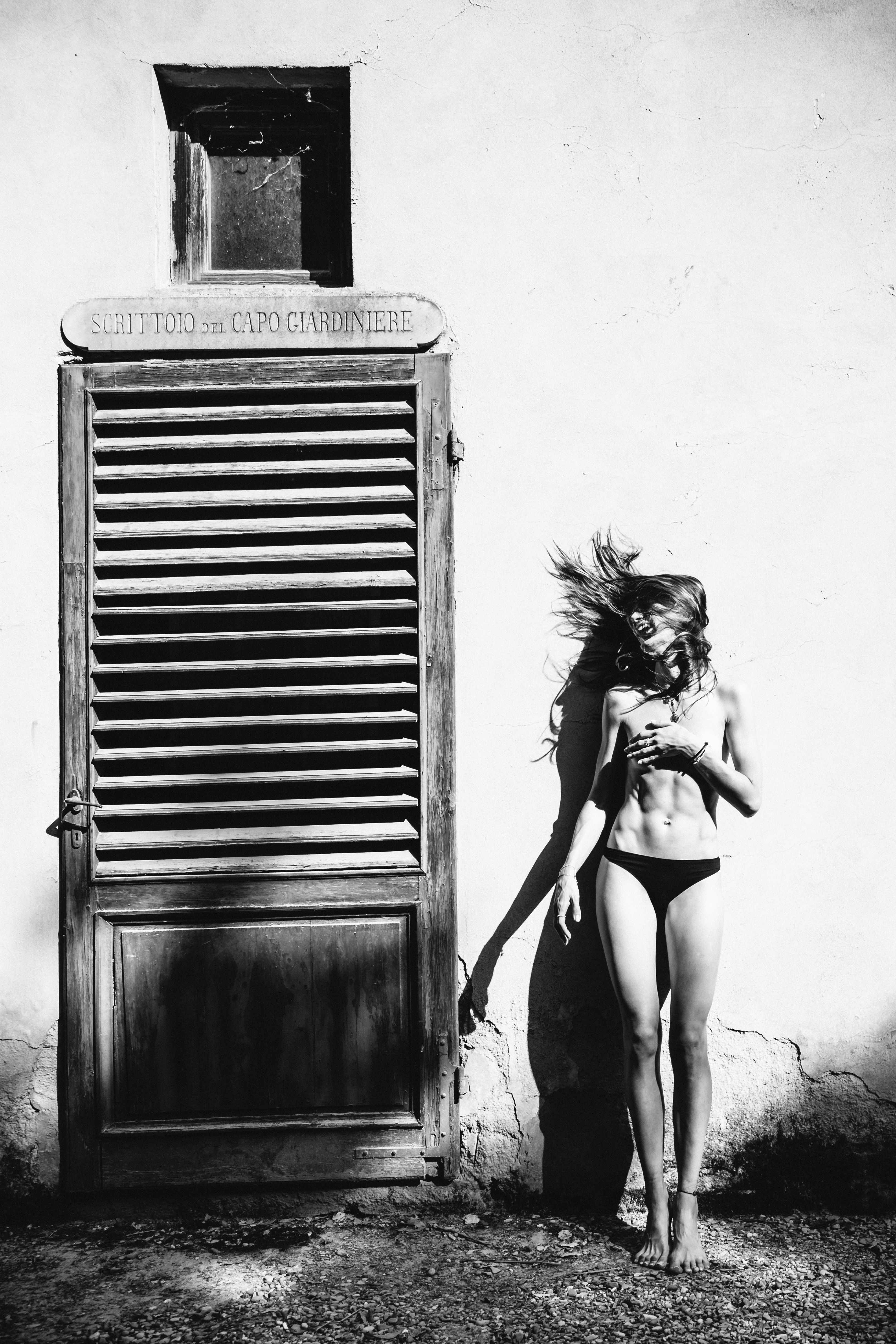 This shot is a celebration of the sun and the joy. It was a warm italian sunny day and we found a crumbling door in an old italian park around Florence (Scrittoio del Capogiardiniere: "gardener's desk"). We could imagine an old man trying to find his last defence against the sun behind a simple wooden door while all the people were walking around the park. The popular russian model Anna Bogomazova gave me a big smile thinking about an old italian man looking at her while she was nude, posing and enjoying the sunlight. I had just an istant to capture this image.