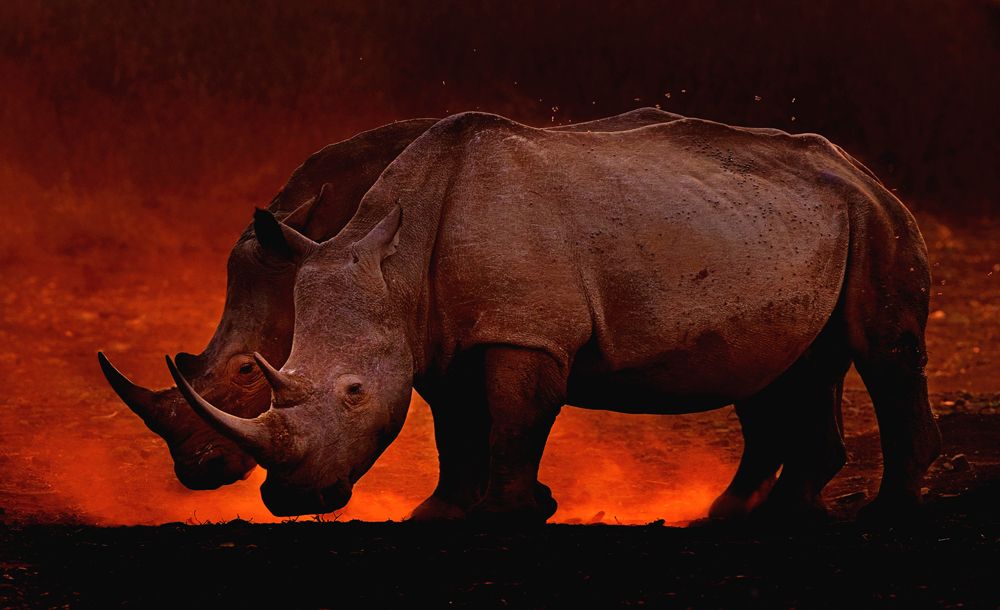 Rhino are severely endangered. This images symbolising their plight giving an illusion of a burning Earth.