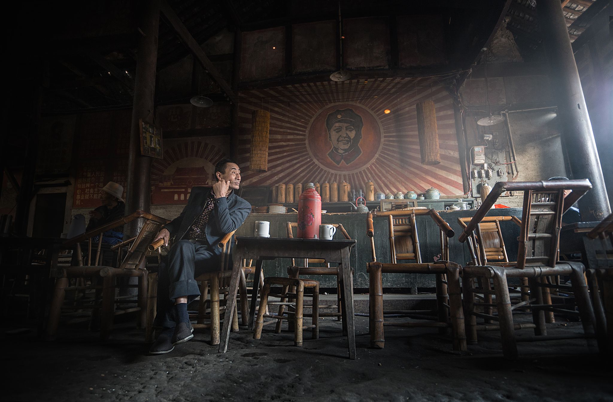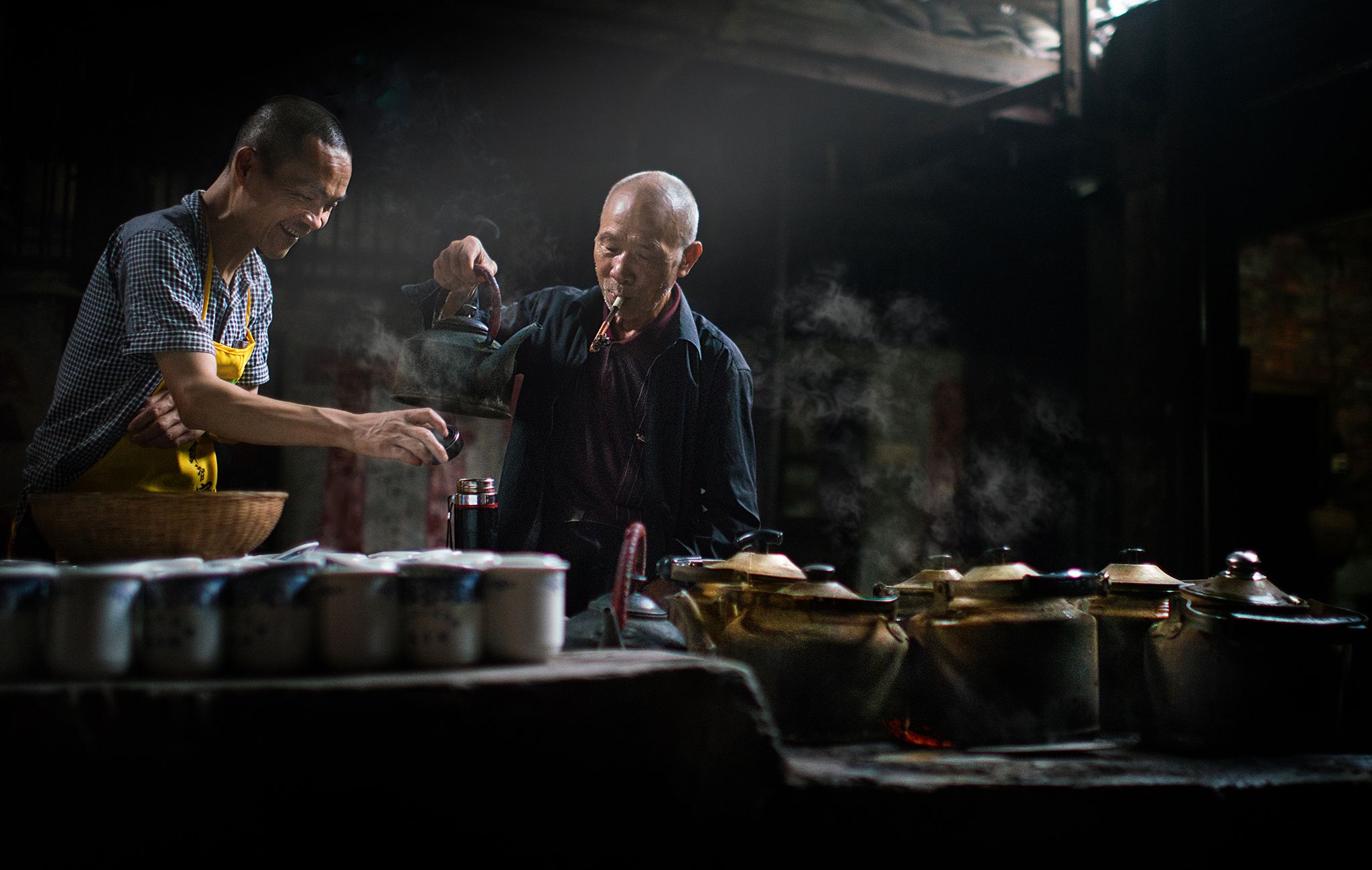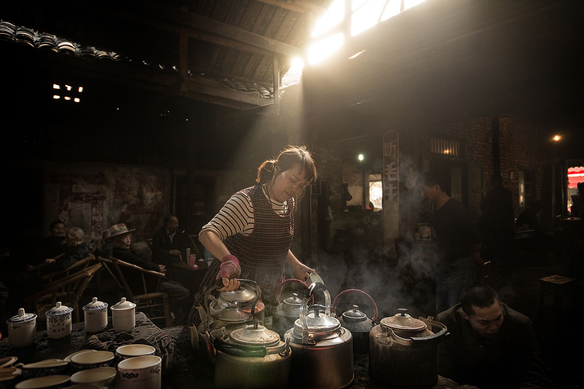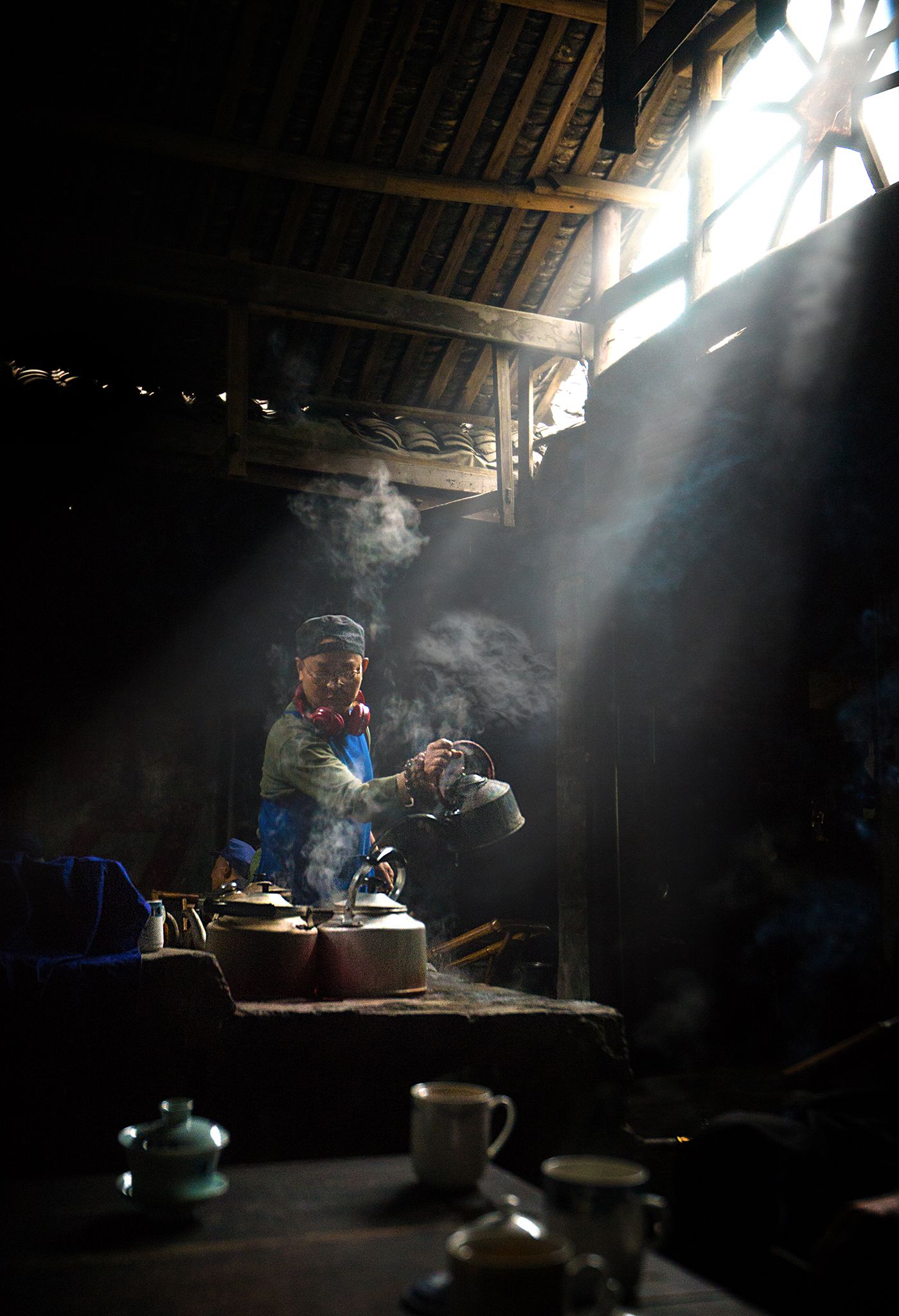 The Old tea House Visiting this over hundred years Tea house in Sichuan Chengdu, in a early June morning , lucky not too much guest around we can easily taking picture around all guest here is the elders retired people in this village, they gather every morning chartting playing card games.. the Tea Master is also the owner of this Tea house , he saw outsider around taking picture , he show his hospitality showing us his skill sprinkling hot water from the kettlehe love to showcase sprinkling hot water from the kettle