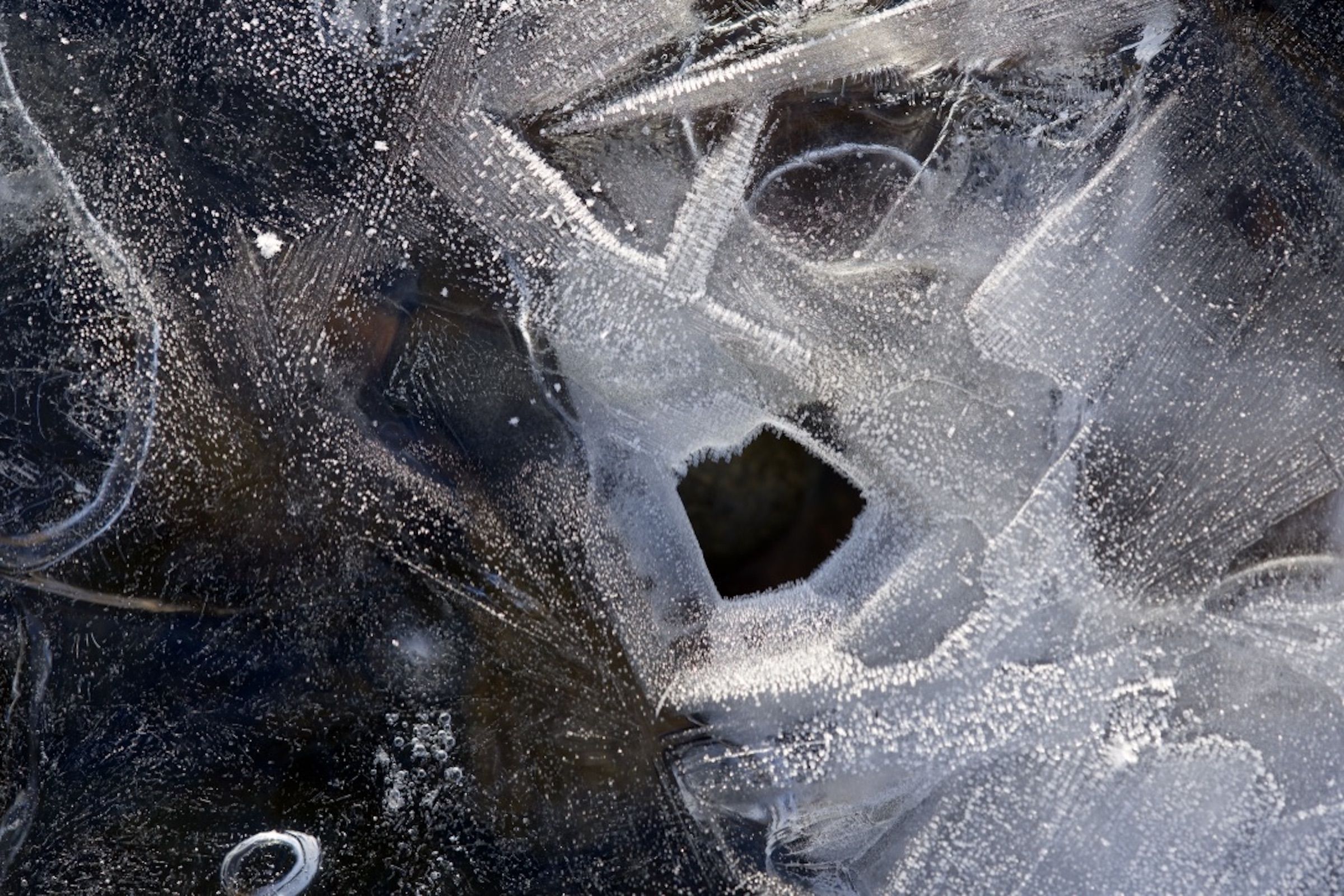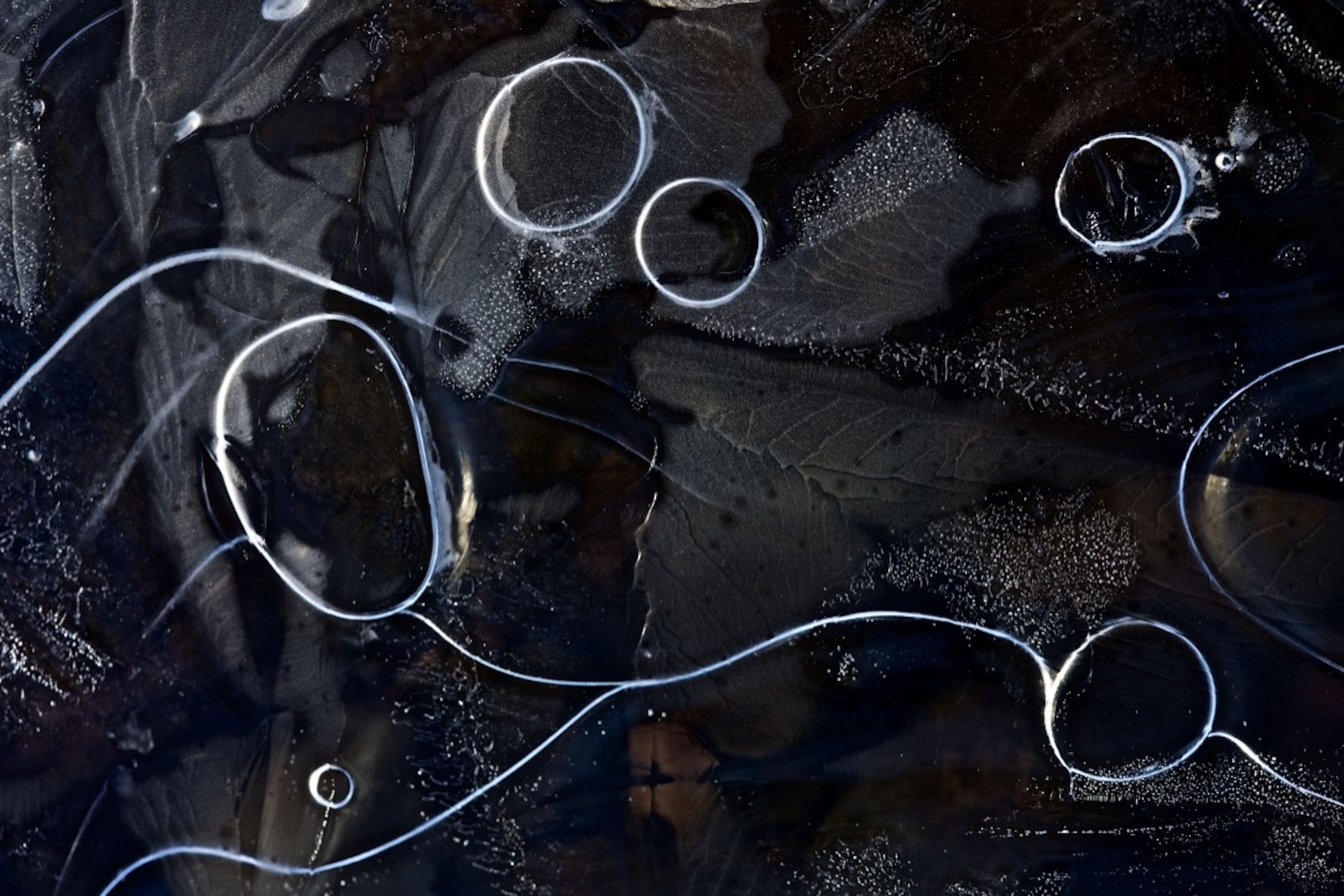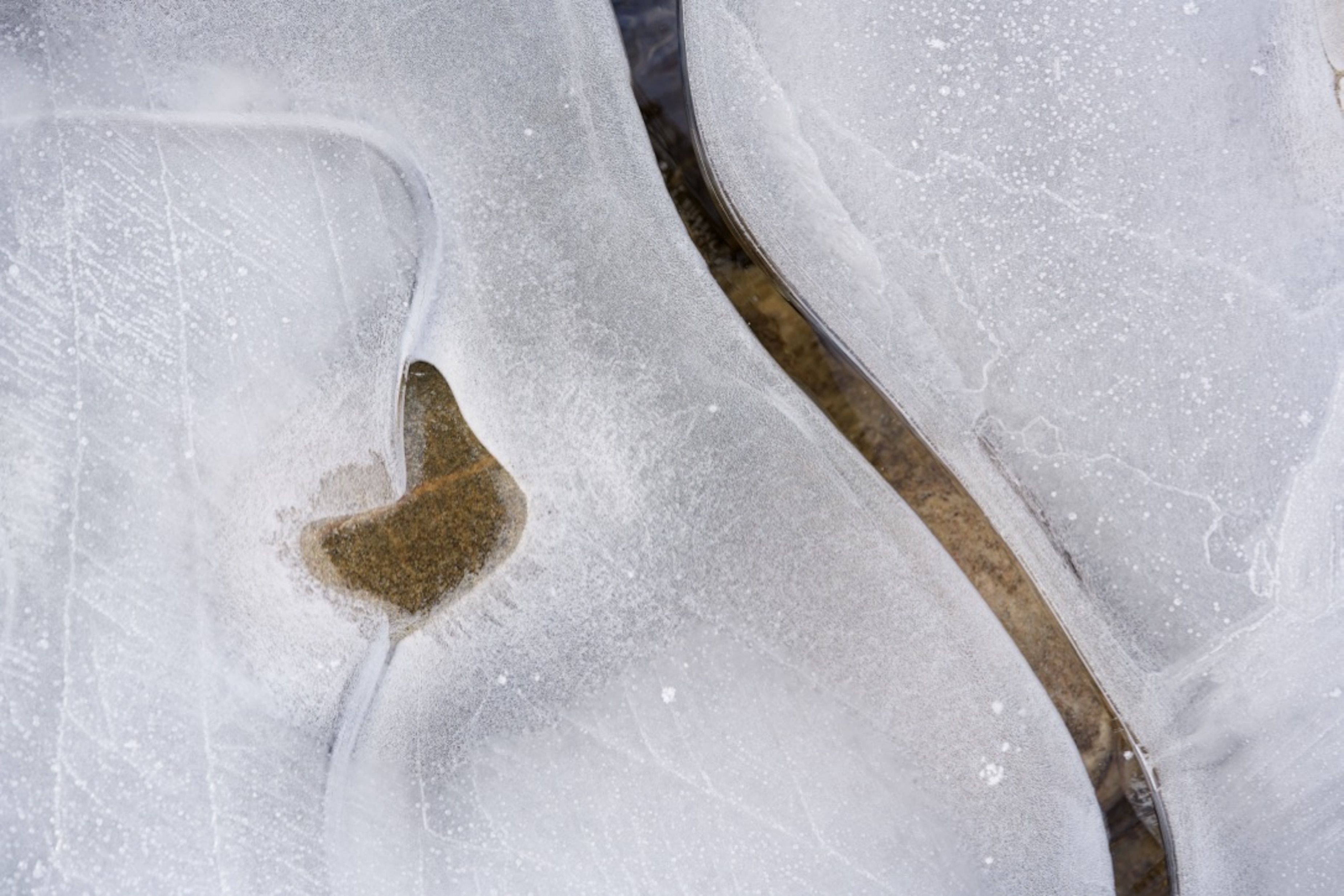 Some of the pictures in this series appear otherworldly, others look like etchings made by a human hand. All are photographs of the surface of a frozen river in the Scottish Highlands. Humans have the ability to bring about a wonderful future for this world - but we tend to hold tight to a world view of received wisdom and allow it to bias what and how we see. When we let our eyes relax and our hearts soften we become more receptive to mystery and the possibility of alternate realities.