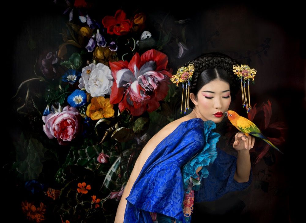 From the series Indochine, Hua Niao is named after the traditional Chinese "flowers and birds" style of painting from the 10th century. Delicately posed in voluptuous surroundings, the subject's exposed naked back hints at a vulnerability and inner beauty