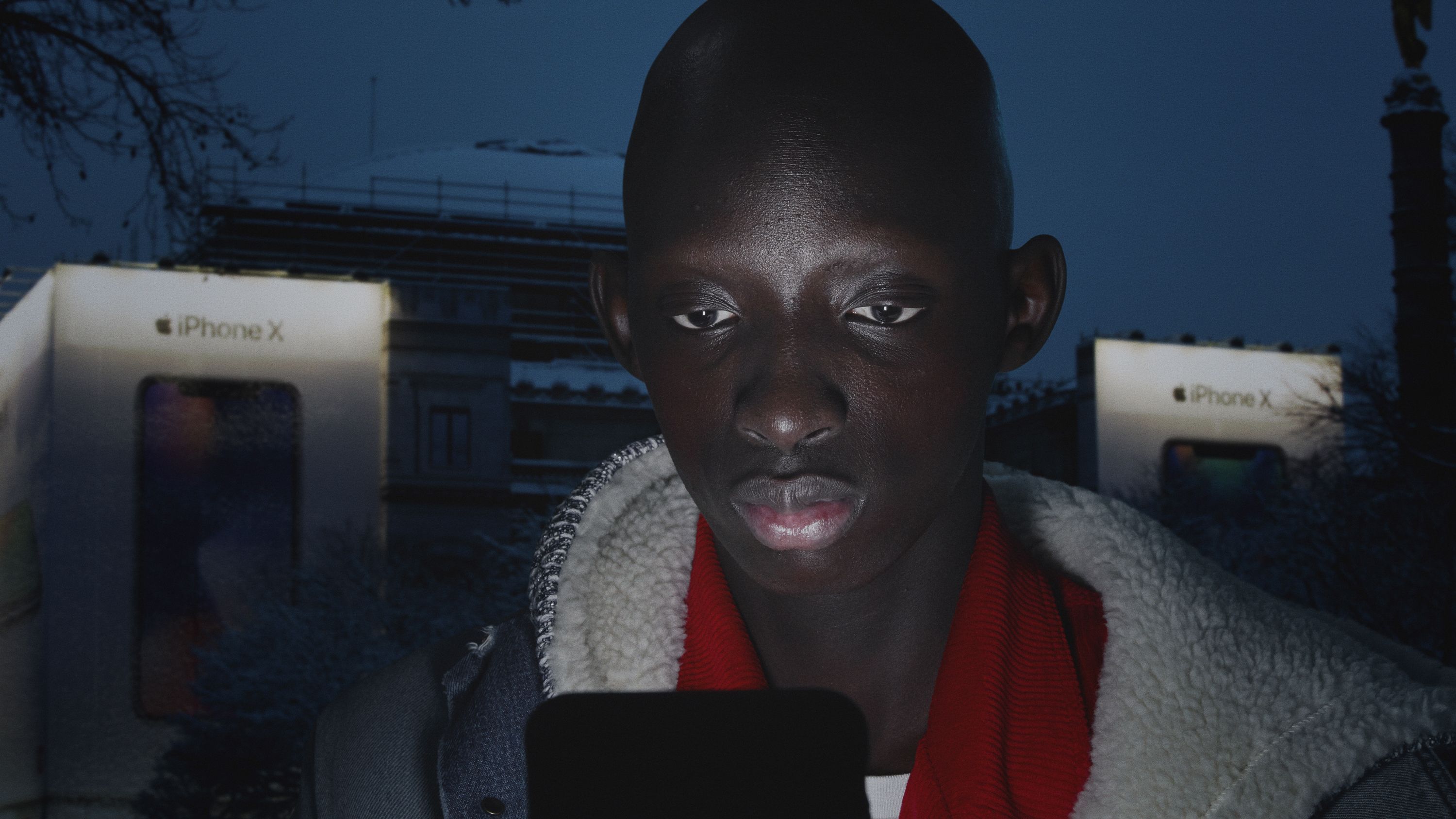 "Hello, It’s Me" seeks to portray moments when adolescents find themselves poised between two worlds – here the real and the virtual – as they seek to navigate a path through the shifting sands of their lives and negotiate their way into adulthood in an uncertain, ever-changing world. The one iconic object that currently defines adolescent life in the modern world is the smartphone, intrinsic to the image of today’s youth. Amardeil’s series places the visual intensity of the stunning backgrounds in constant juxtaposition with the cold light emanating from the phone screens.