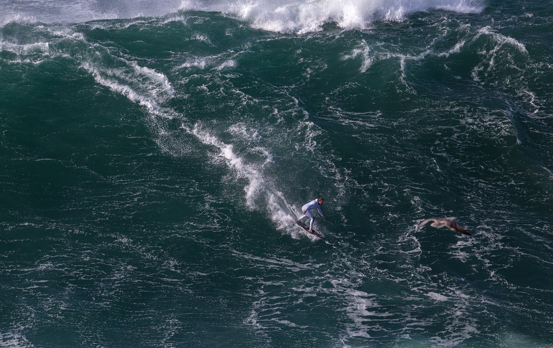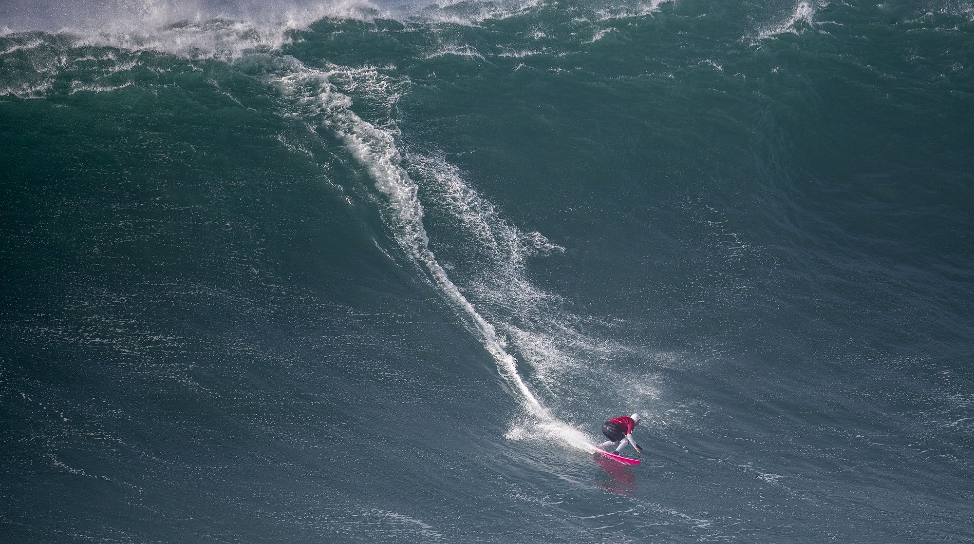 In the "Playa do Norte", in Nazaré (Portugal) the World Surf League is celebrated. Nazaré is known throughout the world for its giant waves. Everyone wants the big wave.