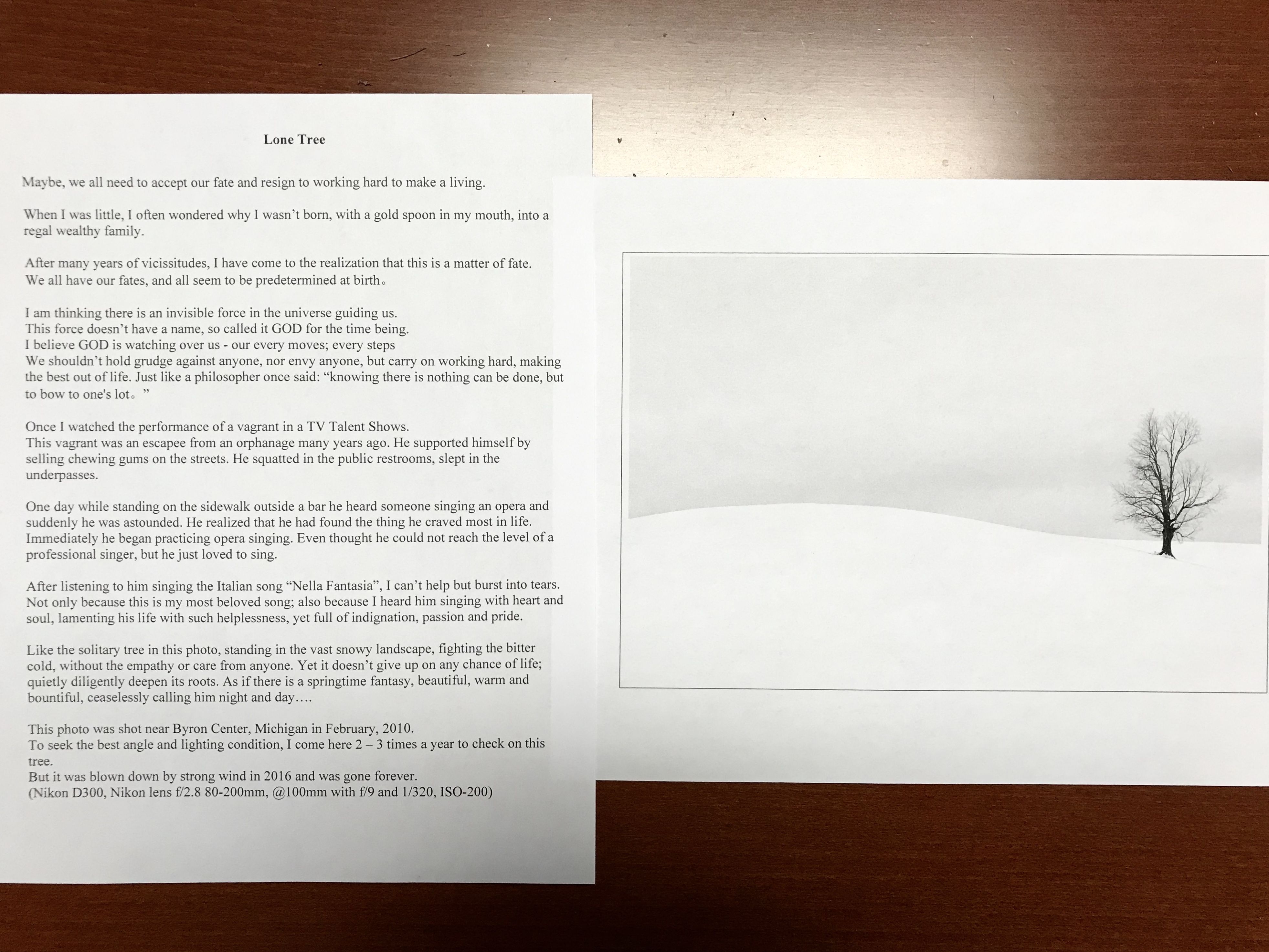 Through photos I try to express a message of peace, calm, and beautiful scenery surrounding us in our living environment. I also describe how I create my photos and the feelings I have during that moment, each photo will include all information captions along with my own dialogue. Every landscape has its own life and meaning, depending on the viewer’s mood. I try to catch that emotional feeling at specific moments in landscapes, using the Chinese philosophy of life and the aesthetic principles "less is more" and "empty is full" in creating my images. Using primarily white tones in the backgr