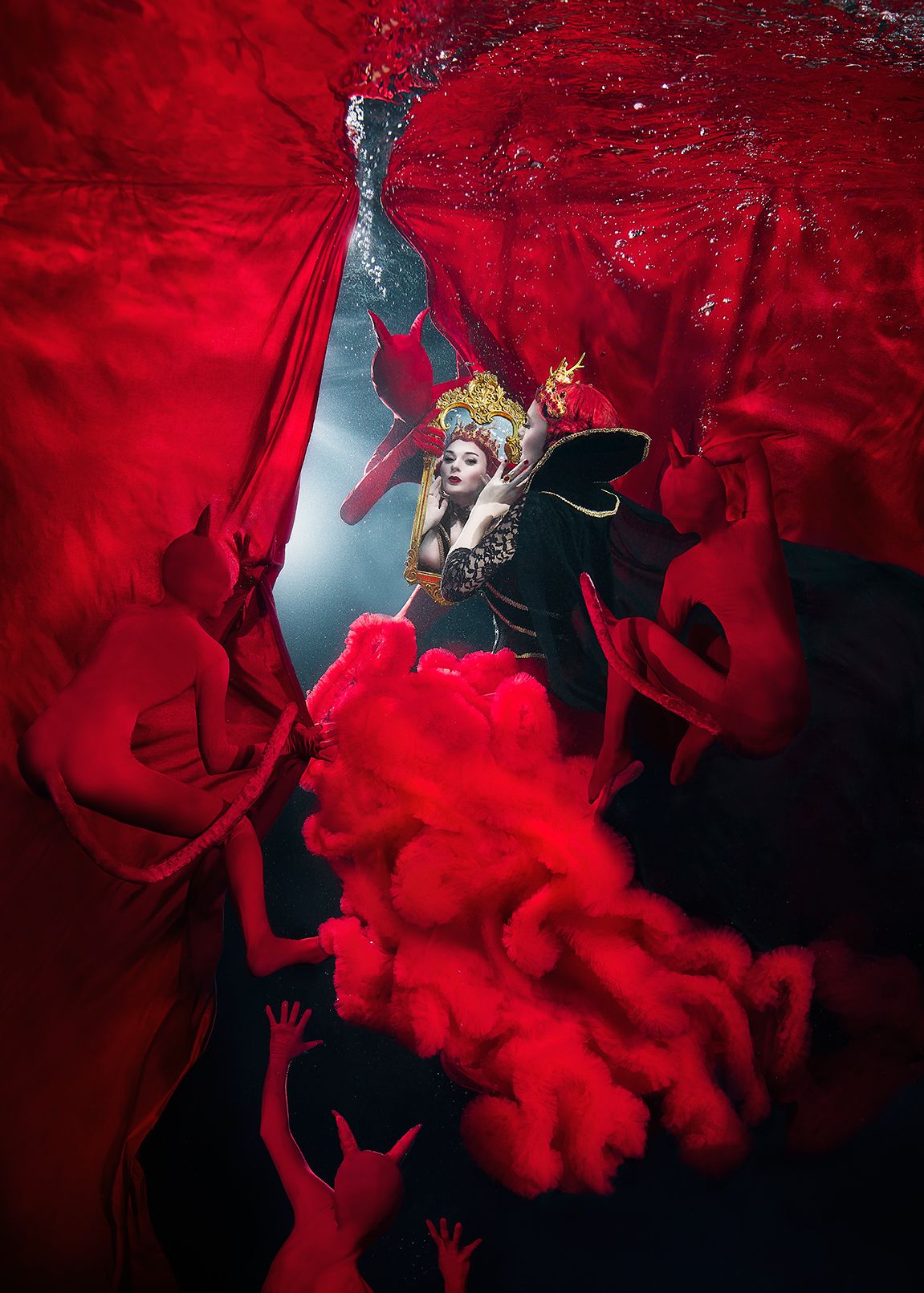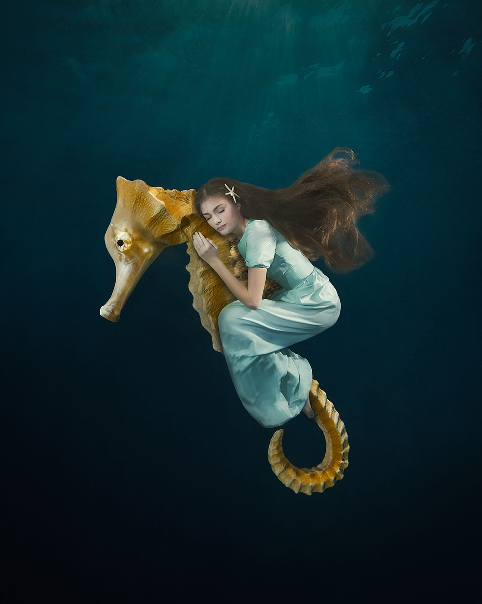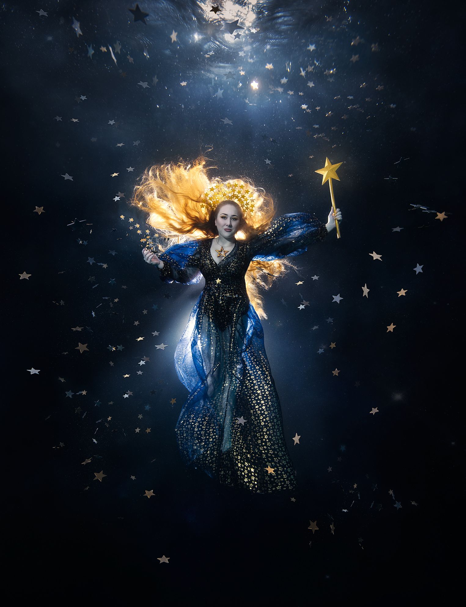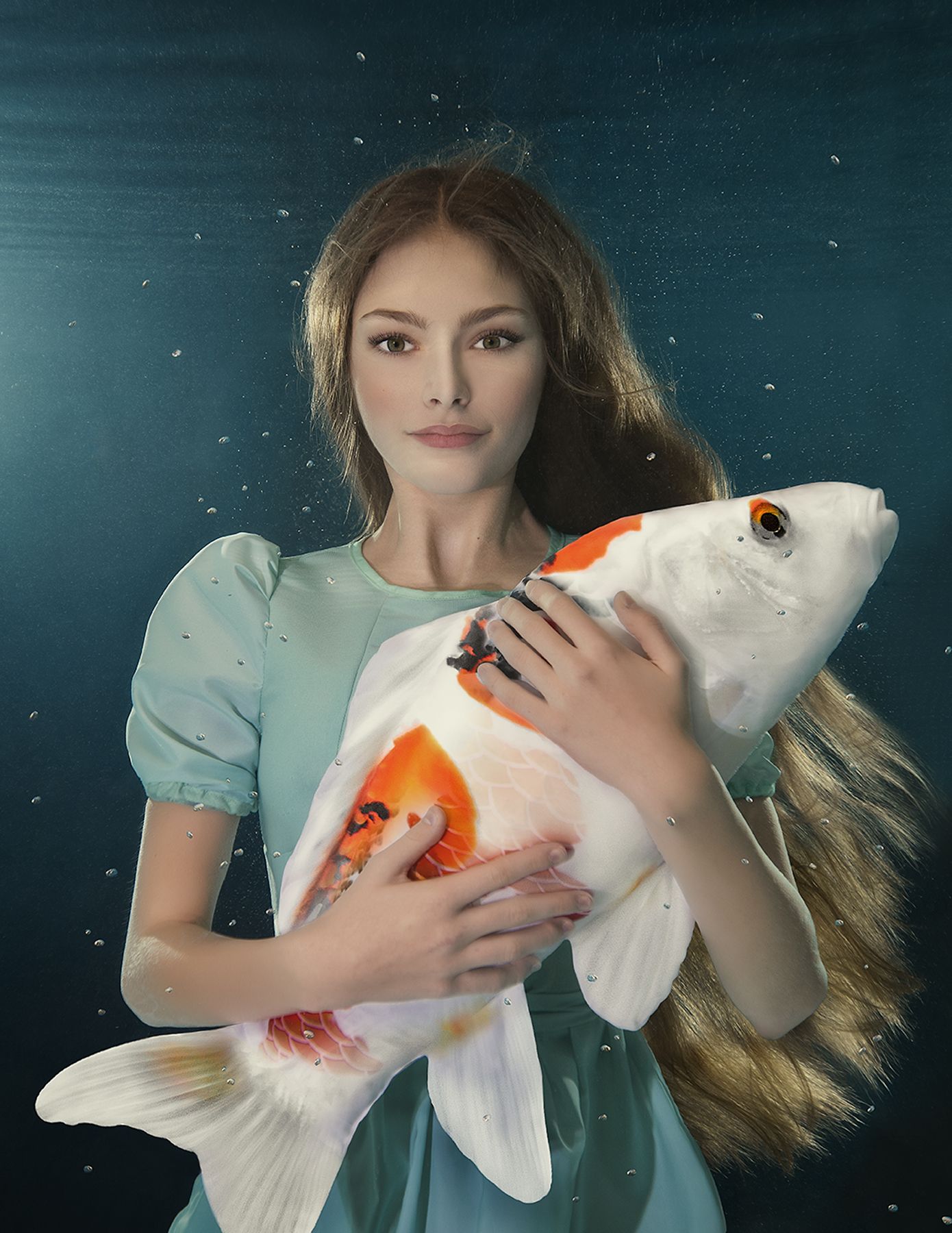 Once Upon a Dream in Waterland Once upon a time, in magical, enchanted depths, in the land of the endless water, there live a girl name Stella. When she was born, her godmother, the Sea Angel, gave her a book Once Upon a Dream in Waterland. While Stella is sleeping, she is dreaming stories from her favorite fairy tail book. All the scenes are real, photographed underwater. Costumes, props, backgrounds, make-ups are all made by me. The project represents a return to my childhood, to the stories that I imagined as a child , stories that my mother read to me, that I have always dreamed about.
