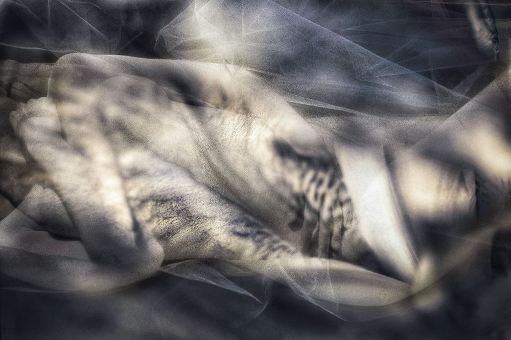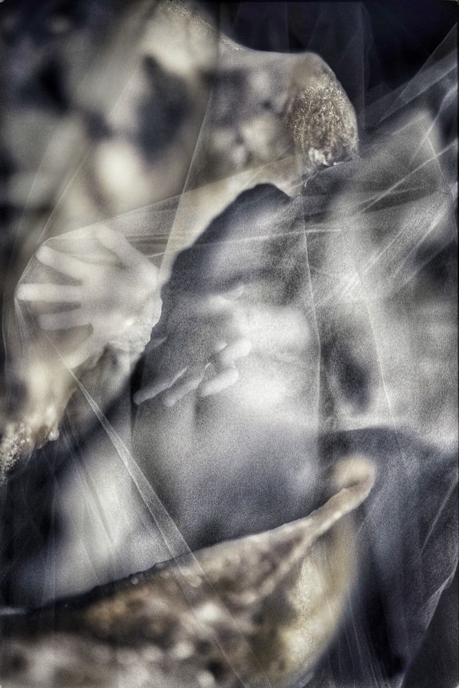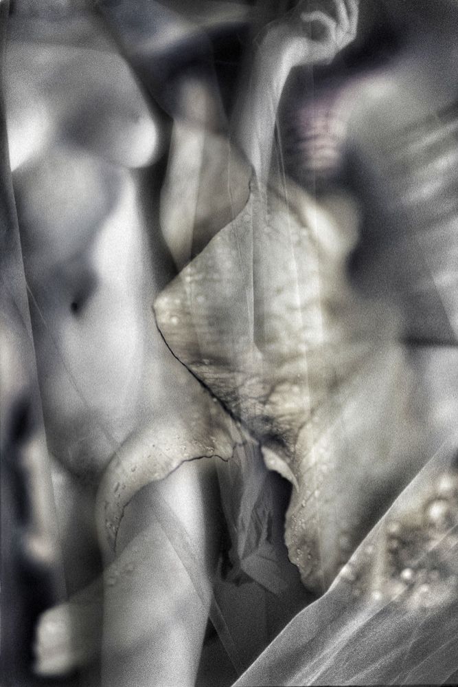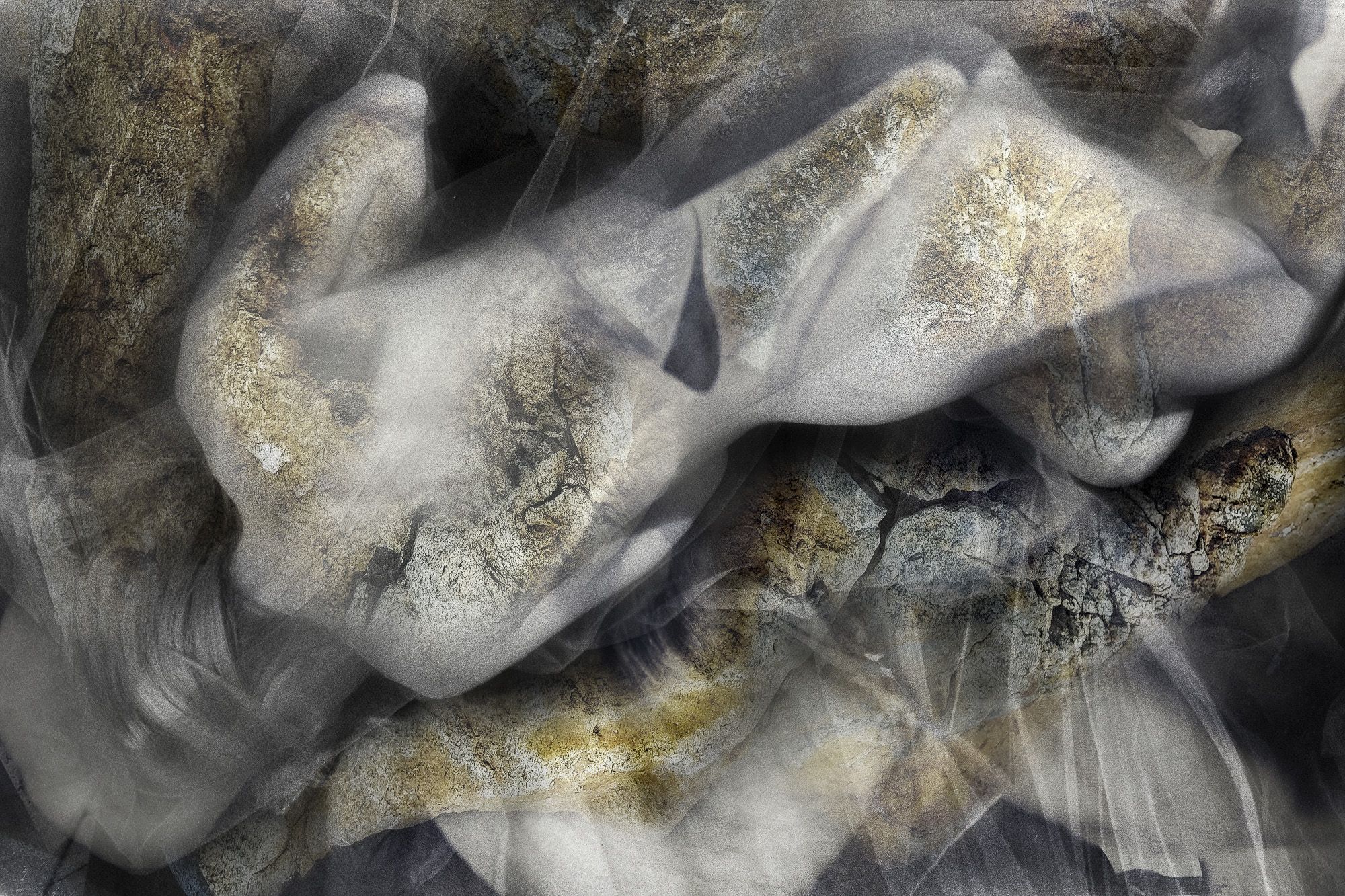 In Spartana’s series “Human-Nature Intertwined” he creates fanciful landscapes by combining the human form with multiple natural scapes. The interplay of black & white forms overlaid with details of flowers take on the function of strata. His work has expanded the use of natural elements to include scenes of nature during times of growth and decay and even using the textures from rock. The textures from flowers, rock and the human form create organic shapes and forms drawing the viewer into Spartana’s world. The shapes and texures form tenuous bond between the organic and the inorganic.