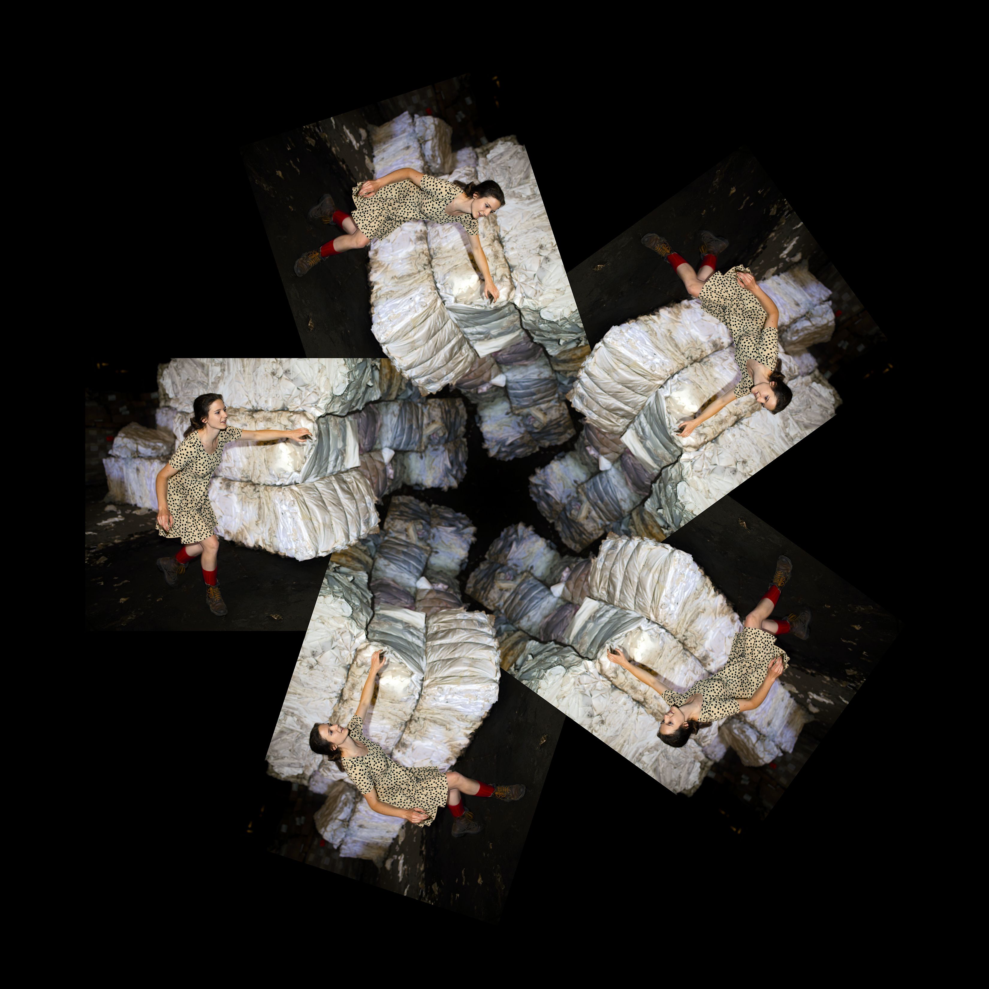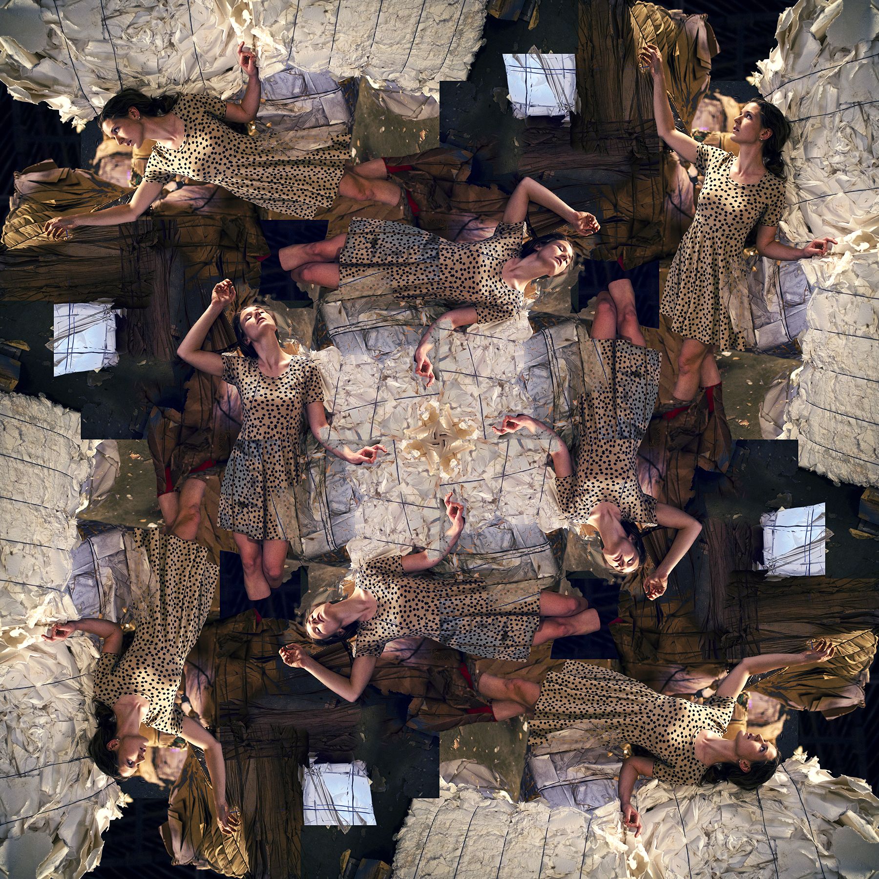 This series is a good example of my working methods and the importance of serendipity to my work. After a brief, initial shoot Model Katrin Dohse and I wandered over to a nearby warehouse with empty semi-trailers out front. The trailers were our destination, but serendipity struck when we noticed that the warehouse was empty of people and had its largest dock door wide open. The cavernous warehouse held piles of bundled, used paper. I found them attractive for the textures they offered and the soft indirect light from the dock doors and skylights.