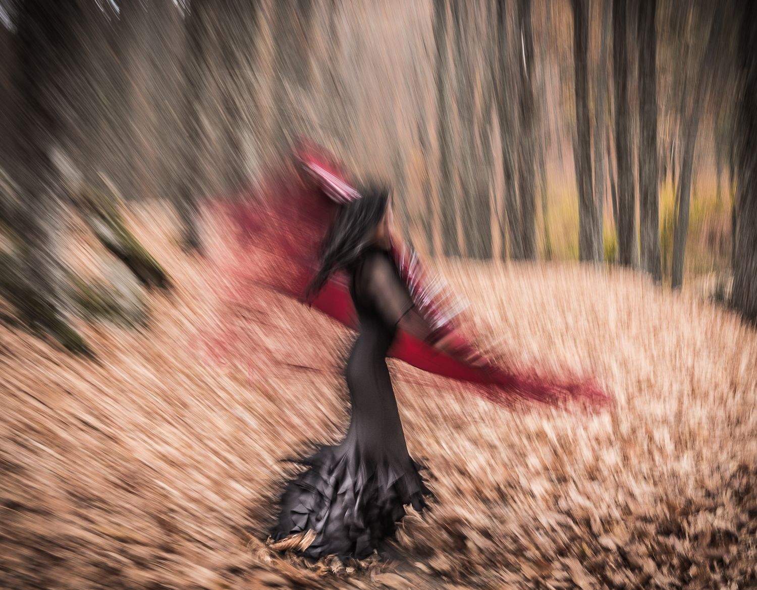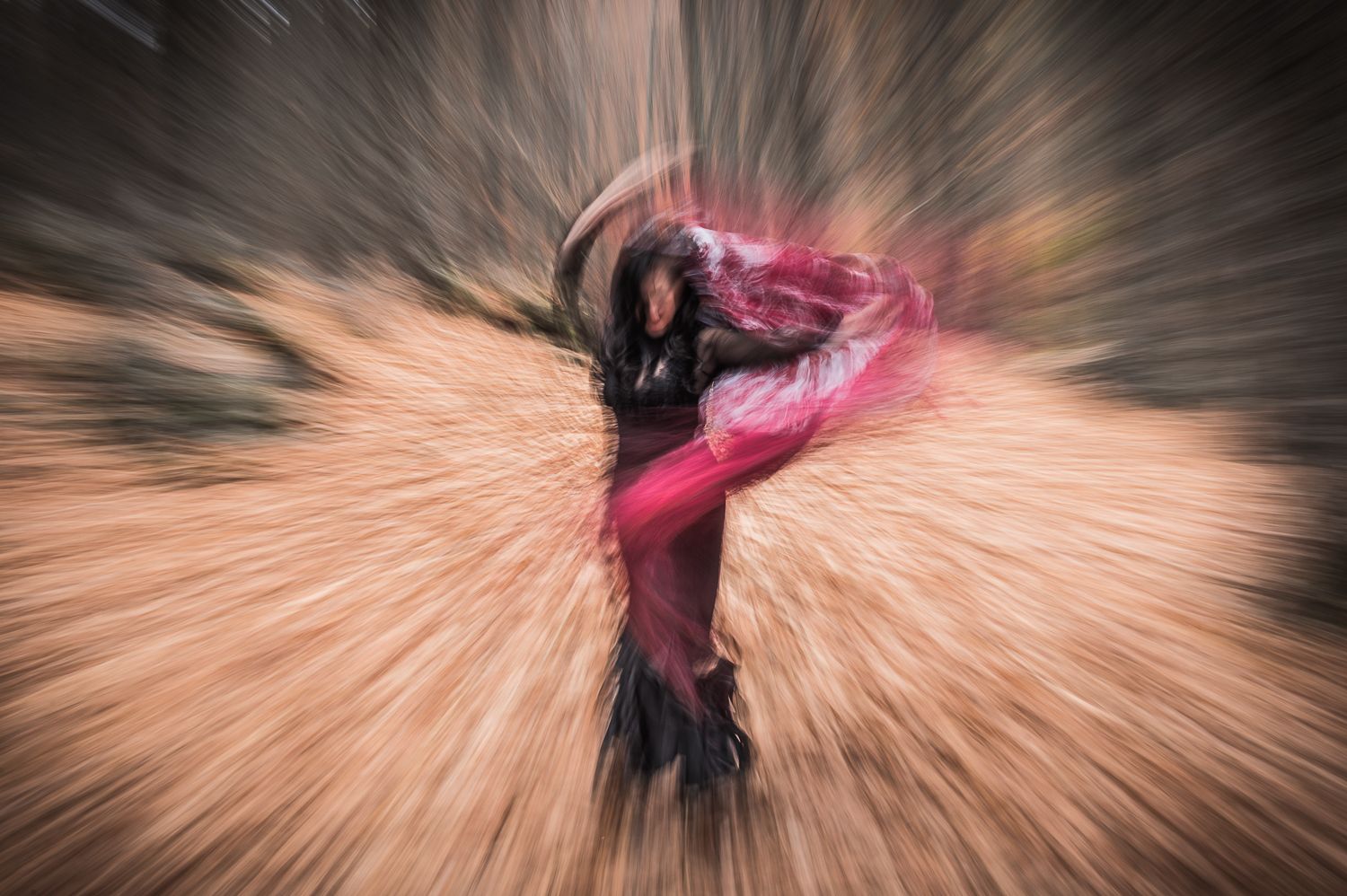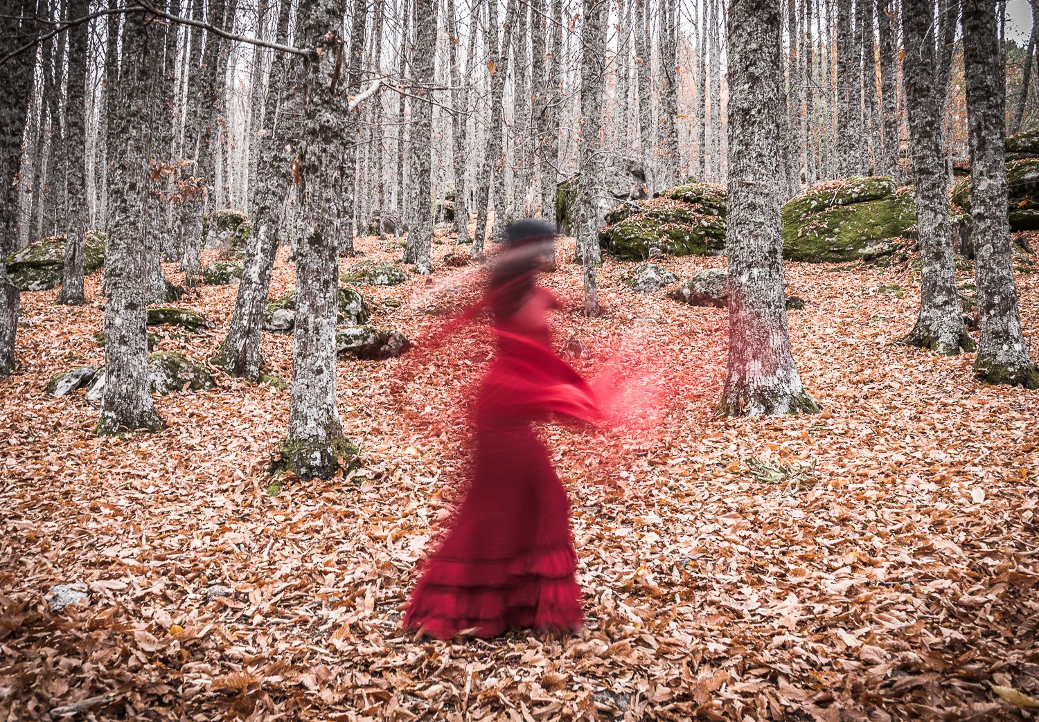 Series of photos in movement in the Tiemblo Natural Park with a flamenco dancer, are made with exhibitions between 1.4 and 5s and some with zooming to try to be part of the forest.