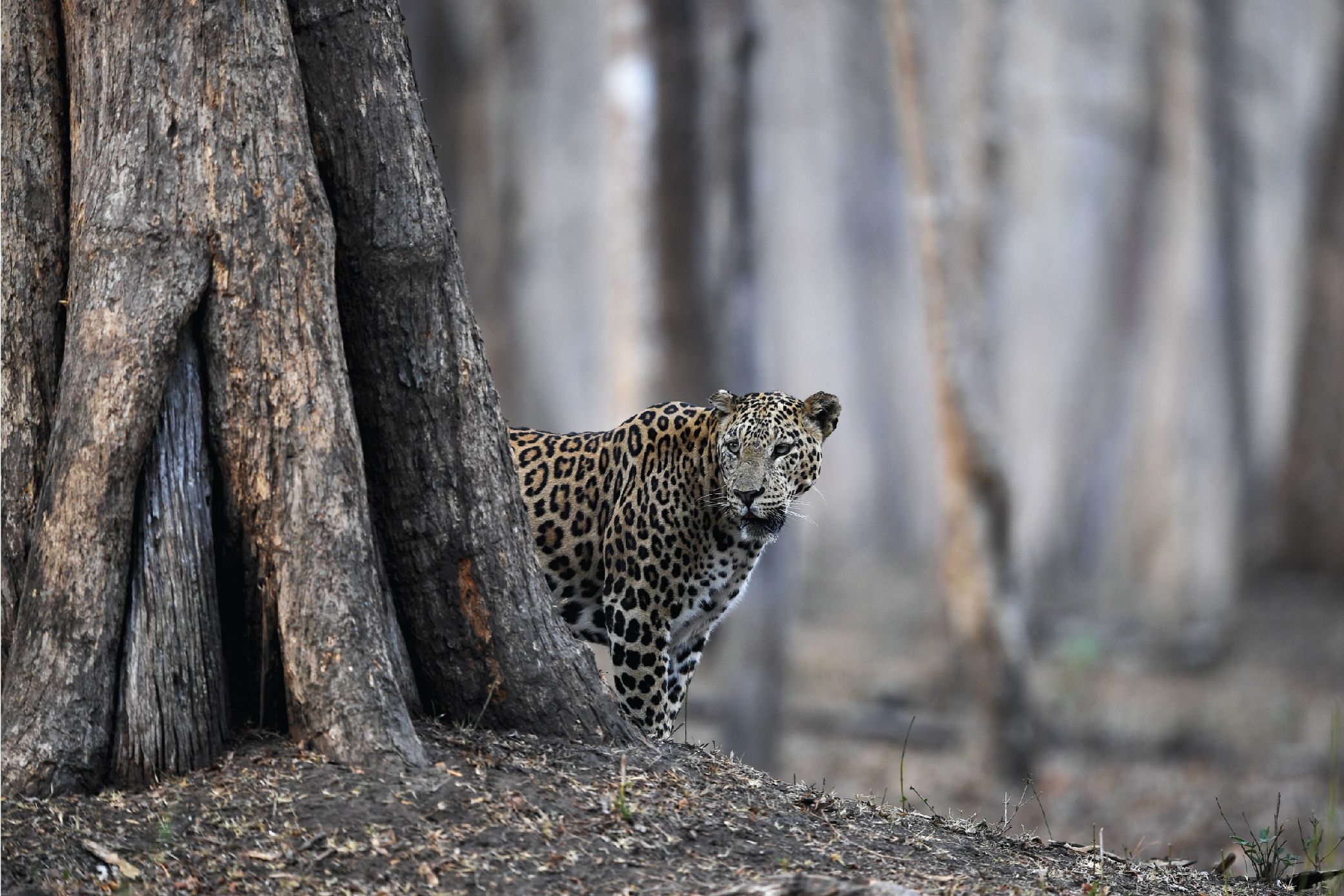 On an afternoon drive through Nagarahole National Park in India, we waited for a sighting of a predator after hearing the forest warning calls of the birds and monkeys. Right as the sun went down, we were rewarded with a frozen moment in time with this gorgeous, huge, male leopard patrolling his territory. He walked with such confidence with his muscular build and camouflaged fur. A moment in time we will never forget.