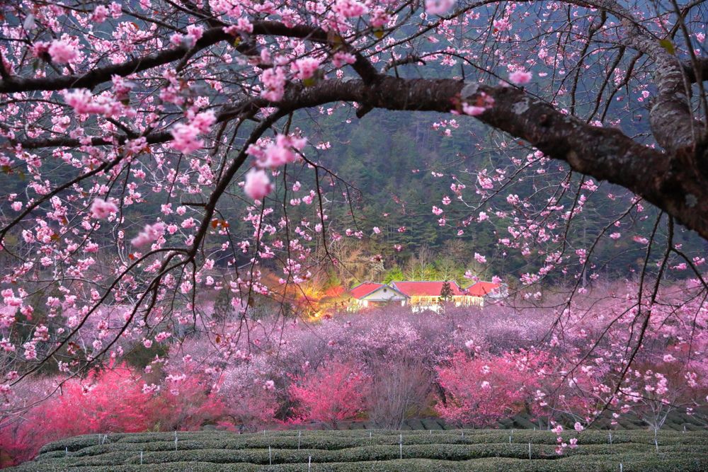 Tea Garden of Wuling Farm in Taiwan, cherry blossoms is very beautiful in spring.