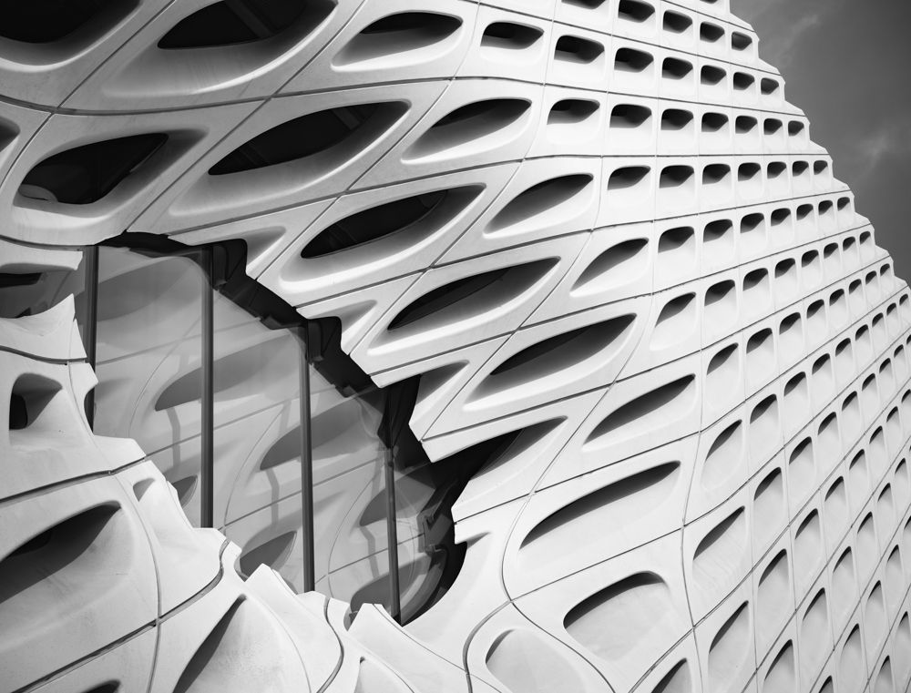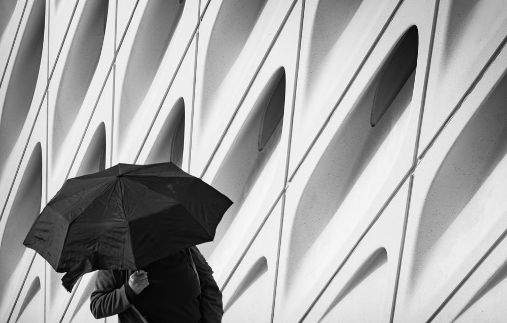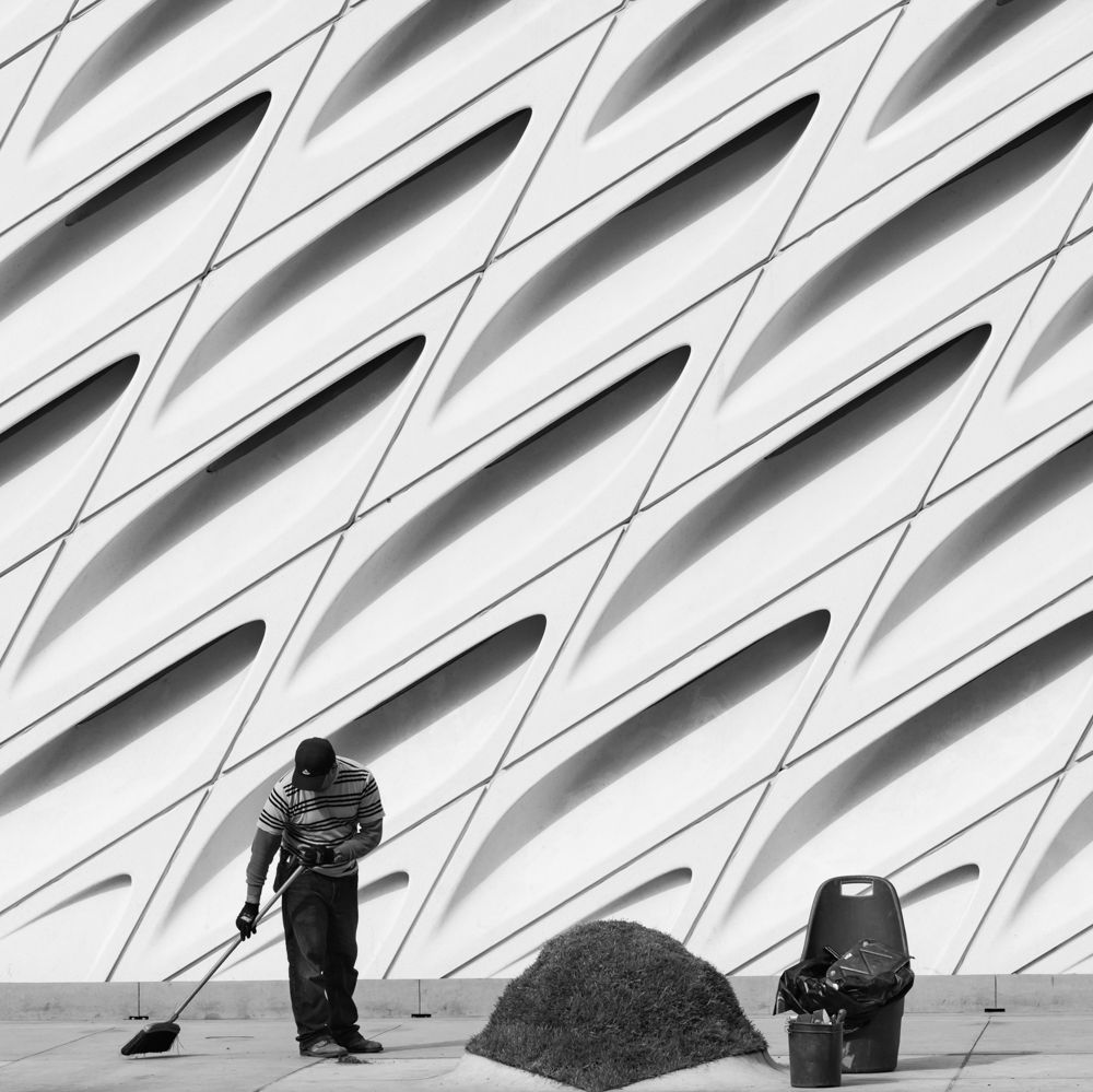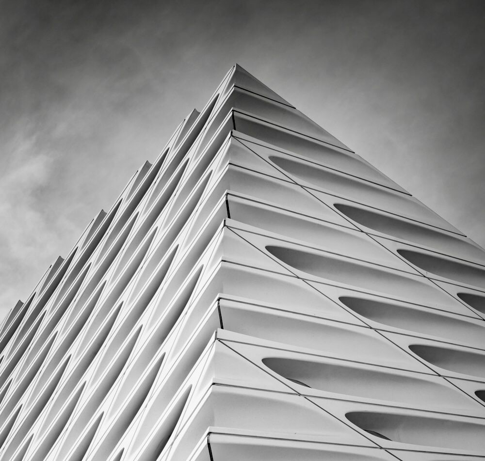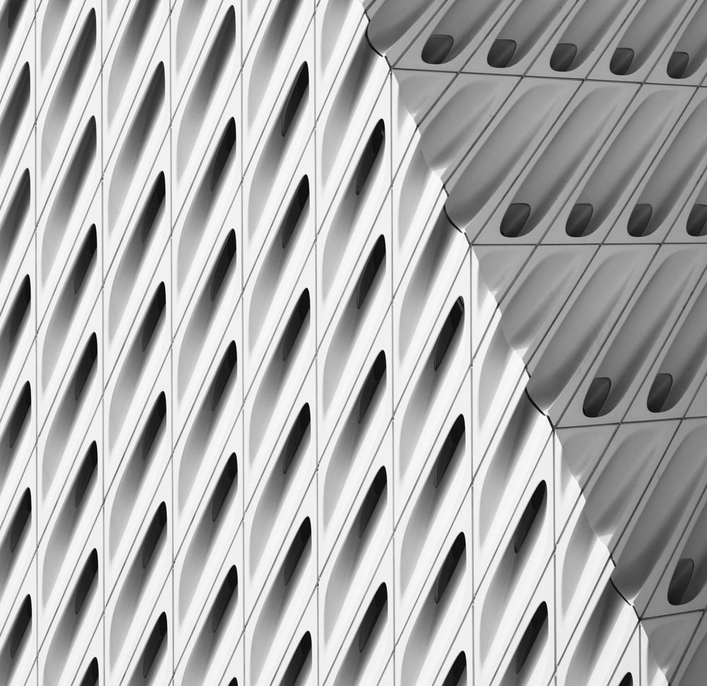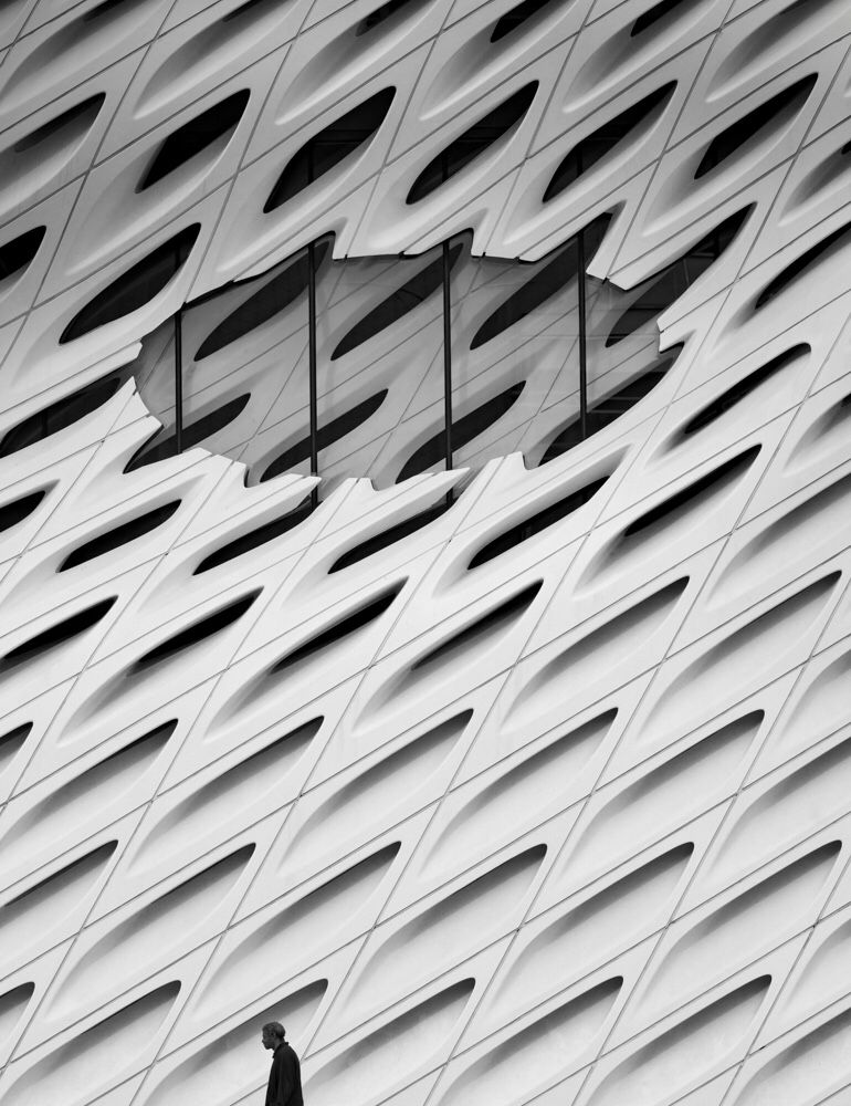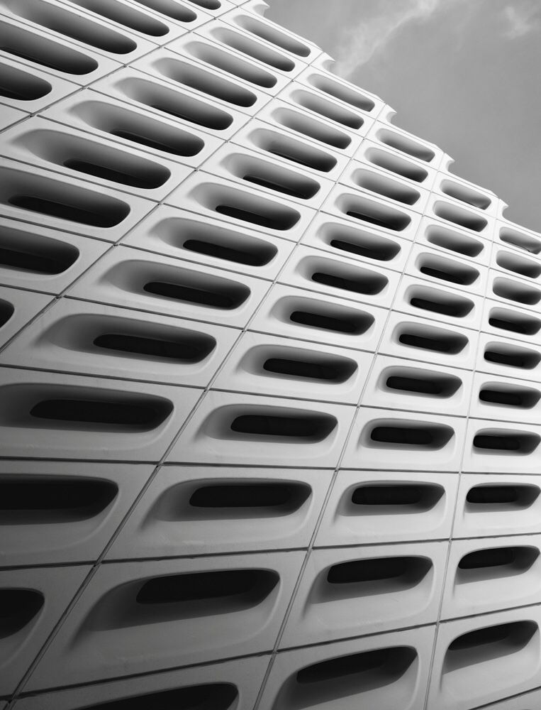The Broad is a contemporary art museum in Los Angeles. Designed by Diller Scofidio + Renfro, the honeycomb-like exterior forms a porous veil enveloping the whole building. The rhomboidal panels make wonderful canvas for the play of light and shadows.