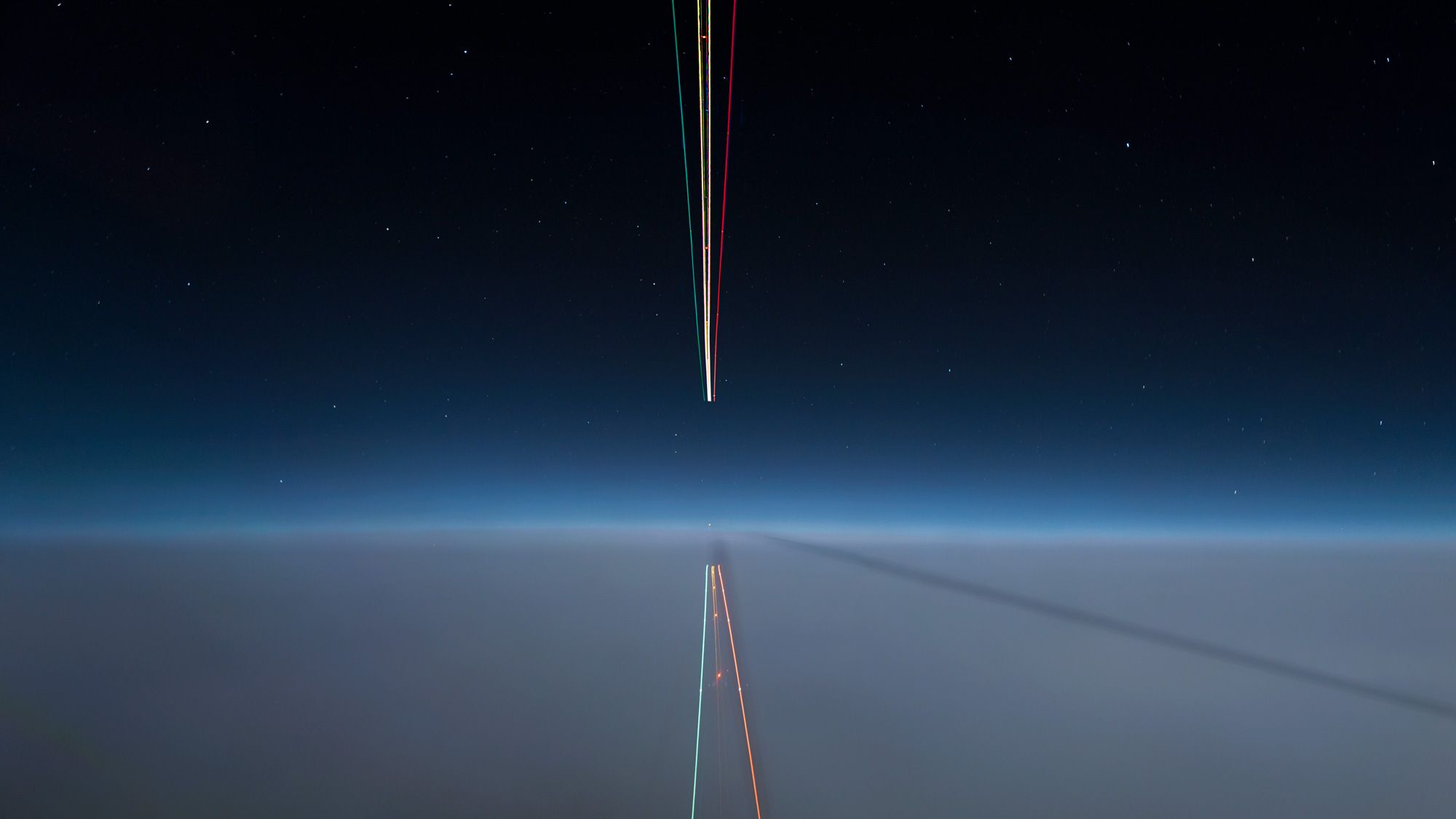 Passing traffic above and below, somewhere over the moonlit clouds over Turkey.