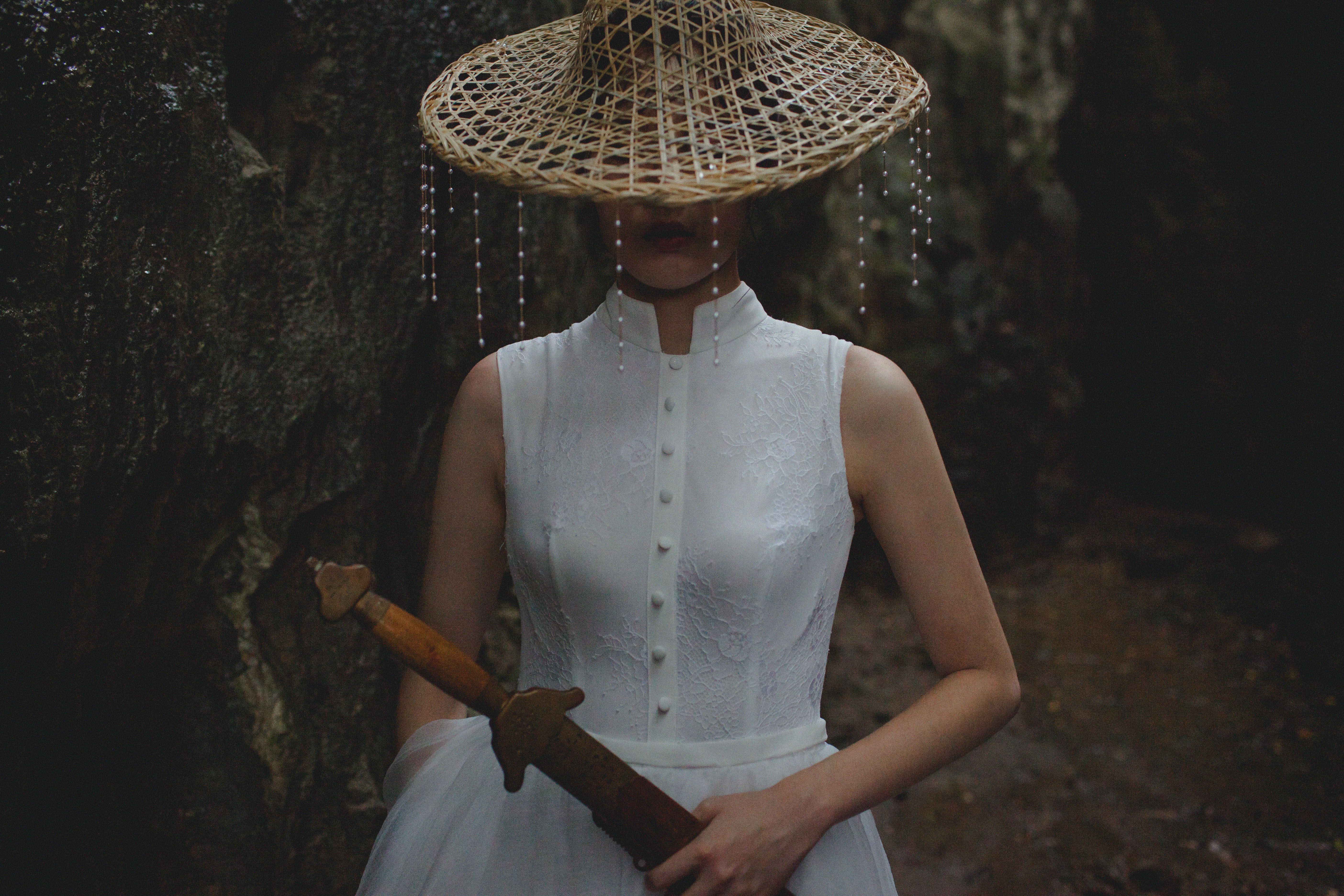 In this series I try to mix the eastern cultural makeup and modeling with white wedding dress, imaging the ronger holding a sword and wearing a bamboo hat wandering the world.