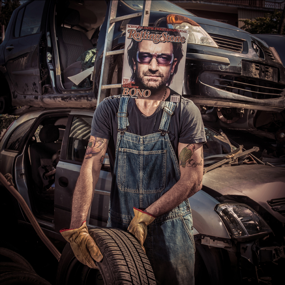 The project Cover Face was born from one simple question: if the cover faces didn't so famous, in another normal context,would they have the same appeal? Throughout the series' consists of dozens of characters, politicians, musicians, actors, Italian and foreign, and under the "masks cover" I asked him to pose to friends, relatives, parents and my wife eight months pregnant with the little Olivia, in situations more 'normal as possible' cause the pictures had to be simple, almost snapshots taken in private, in fact there is no 'post-production and the covers were worn and not really added later in post.