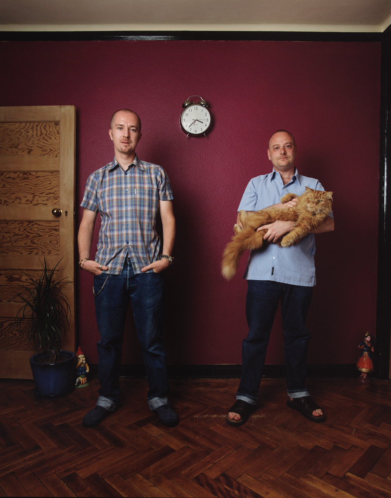 The expression of love and commitment regardless of gender is highly political. Prejudice of homosexual behavior is challenged by the un-extraordinary expression of a serious relationship illustrated as equal to the heterosexual. It is a subtle change to previously more confrontational messages in the fight for equality; it says, “We are the same as you; our lives are as complicated and as mundane”. The series composition is inspired by the 15th century painting the ‘Arnolfini Wedding’ by Jan Van Eyke considered a record of a clandestine marriage.