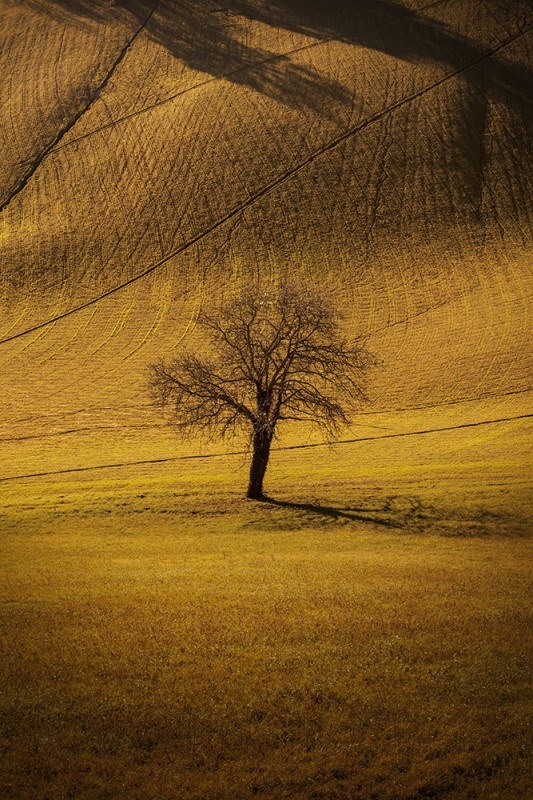 Not all photographic works are the result of planning or of travelling so far. I spent a few days in autumn in the countryside of Umbria (central Italy), to accompany a friend on a visit to his old parents. One day as I was coming back to the village I was greatly impressed by the view of the sunset behind the hills of countryside. The seeded fields engraved by deep folds, the shadows of the hills that overlooked the land like giant waves ... it seemed to me to see for few seconds a secret harmony, the beauty created by the human activity and the nature together.