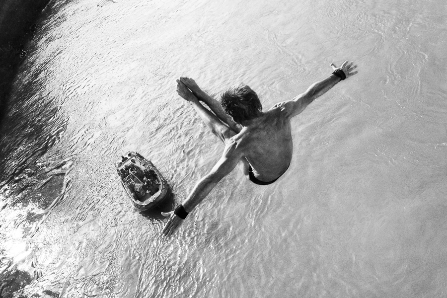 Marco Fois, one of the men who performs the traditional New Year's dive from the Cavour bridge into the Tiber.