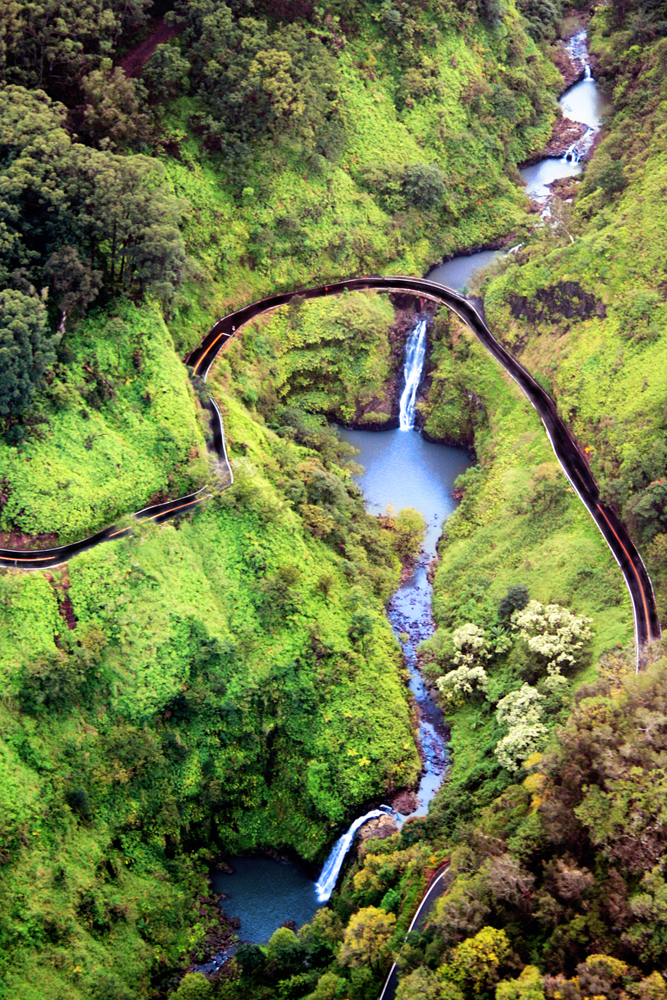 Winding roads and waterfalls on the Road to Hana, Maui, HI