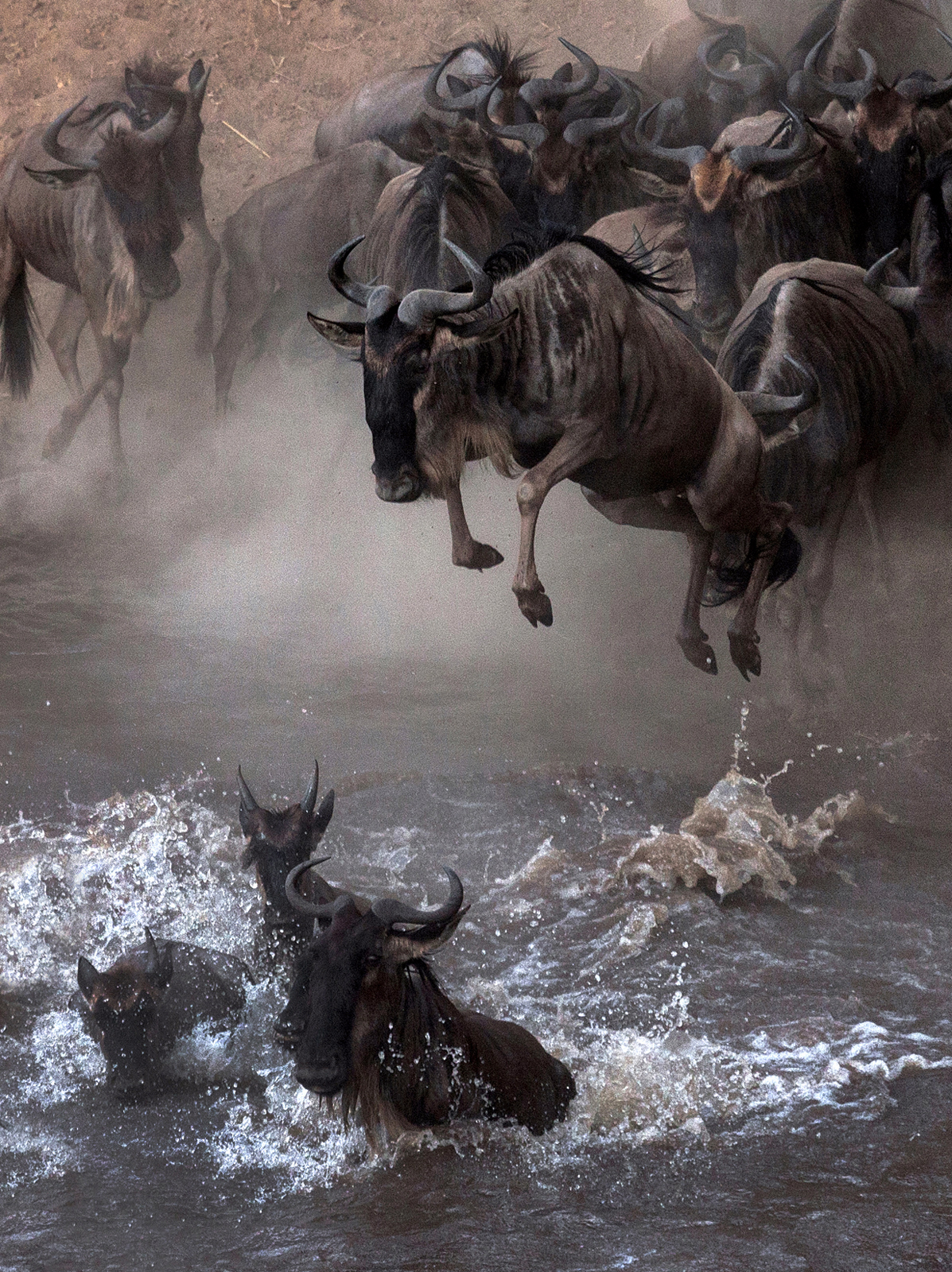 A large migration of Wildebeest. The Masai Mara National Reserv.