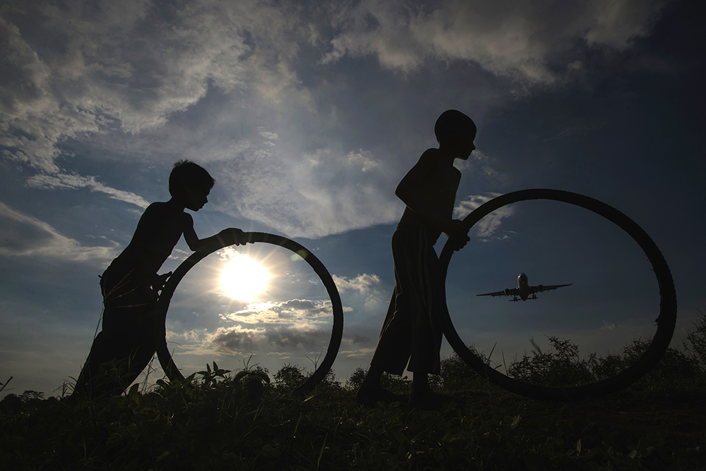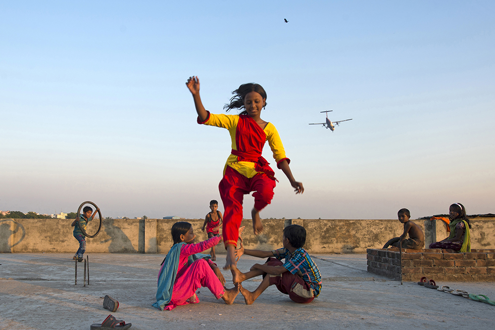 Runway is a place where the air crafts take off and land. In Dhaka, Bangladesh there is locality near the runway. Local boys and girls pass their regular childhood with many activities with the presence of the aircraft near them. Some activities are due to the air crafts presence sometimes not. Photos taken during different activities of the childhood while the aircraft is going to land in the runway.