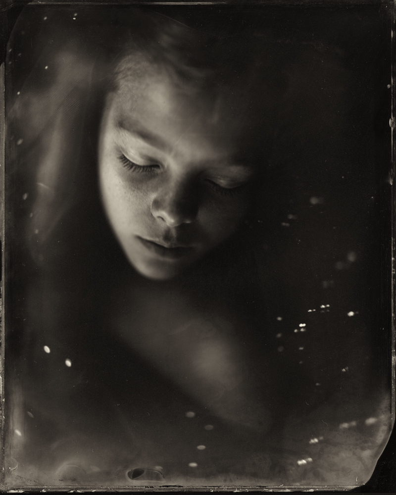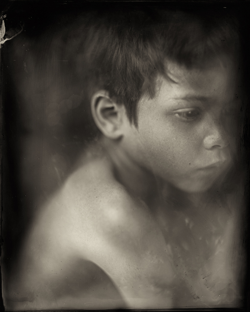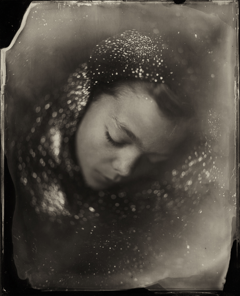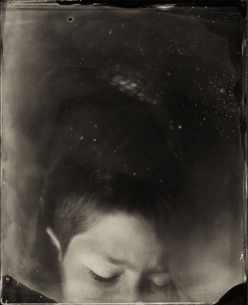 The series "Nebula" are portraits made on coloured glass and aluminium plates. For this series I have used an early photographic technique called wet plate collodion. The process requires long exposures that ease the sitters into detaching themselves from their immediate surrounds, almost as if suspended in time and in space. I find this state of limbo fascinating.