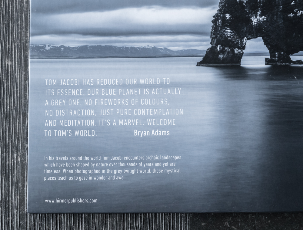 Colors are only reflected light, assembled in our brains, which is also called "Grey Matter". Tom Jacobi spent two years photographing archaic landscapes on six continents. He discovered mystic places that had been created by nature over the millennia and that are nonetheless timeless. When photographed in the twilight world they unfold their immortal power.