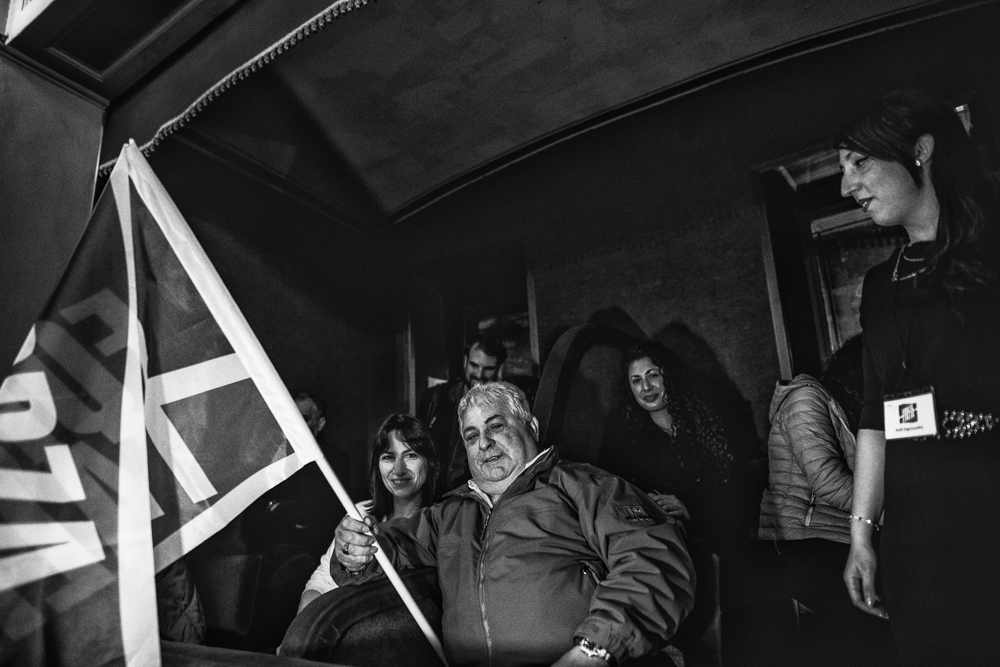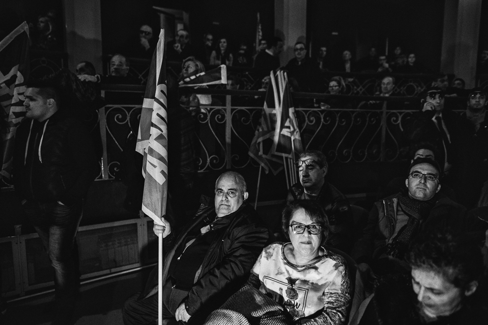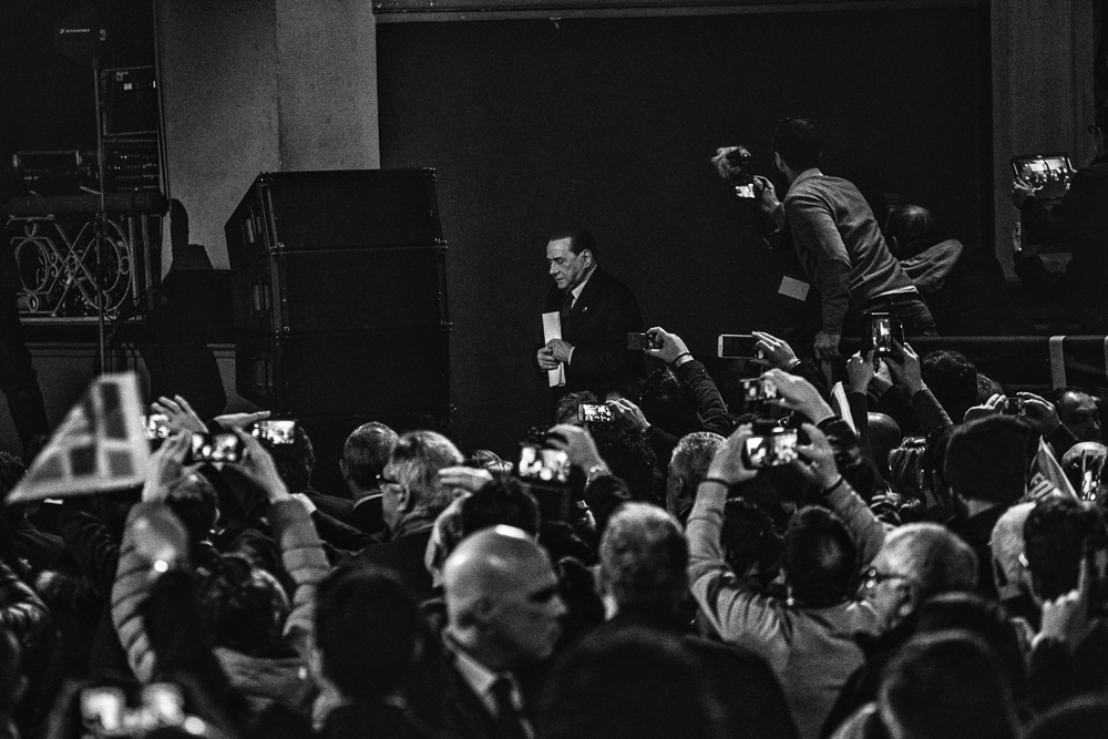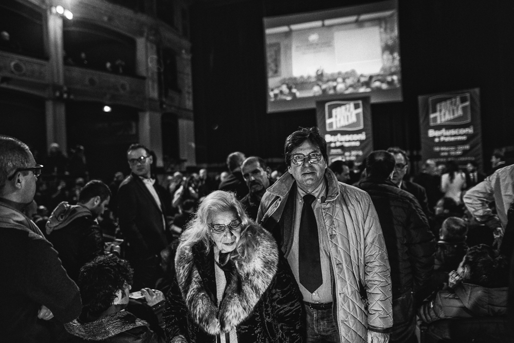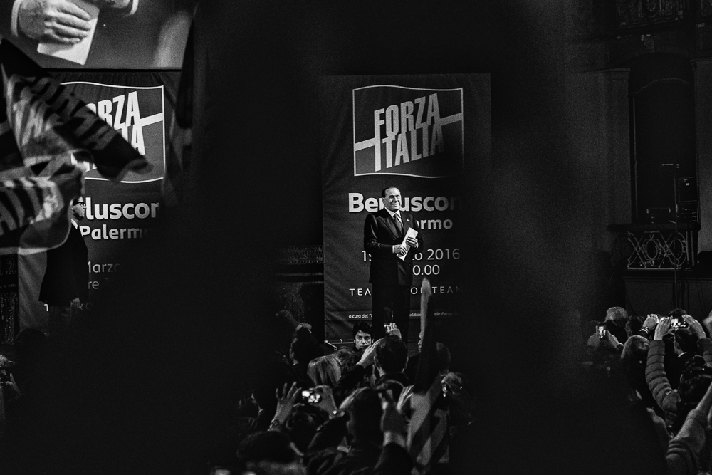 Berlusconi in Palermo, after 22 years Berlusconi returns to Palermo to the Politeama theater for a convention to start the new political campaign. The return of the faithful is incredible, time stands still and it breathes the same air of 20 years ago. The theater was full, 19/03/2016.
