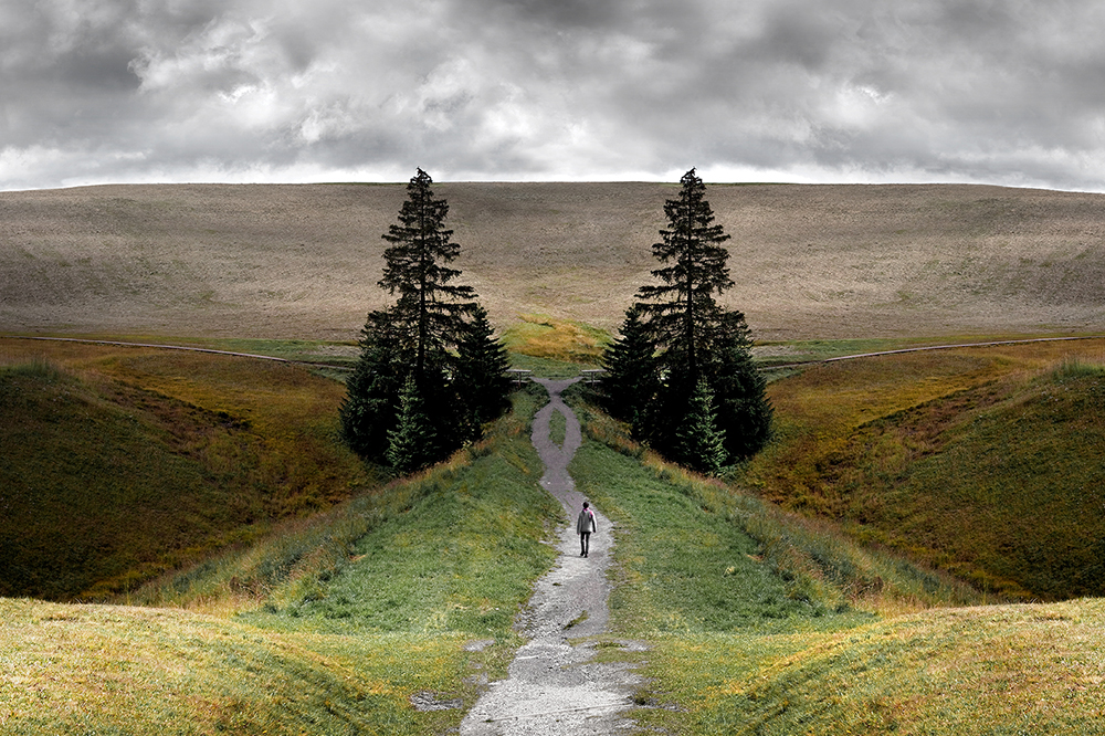 Perspe In the series PERSPE Gustav Willeit creates a parallel universe, showing an environment, which appears real but was actually invented. The viewer is able to recognise the natural origin of the picture, remaining in doubt though, hung in a space between reality and fantasy. The human element, which is often to see in Willeit’s work, is never located randomly but has the task of giving the observer an element in which to recognise himself, creating a balance between truth and falsehood. The theme of the mirror and the double has always fascinated man and the pictures from the series PERSPE are wildly suggestive and possess a sense of mystery, existing somewhere within the border of illusion and reality.