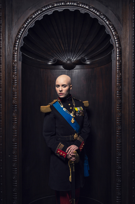 My project “Eve’s Glory†aims to highlight the contrast between this history of military and officials and the pride and “glory†with today’s modern women. In my new project, I intend to explore the visual impossibility of presenting women in uniforms. I am interested in challenging the conventional ways in which female is presented in visual arts. Women in fashion magazines, TV commercials, and mainstream lms, are usually dressed in a way that speaks naturally to a structure of social expectations characterized by a sharp division between masculinity and femininity, dominance and passivity, toughness and delicacy. I see that such a one- dimensional way of presenting women risks failing to capture those who are in a state of internal or, amongst all, external obstacles in their full complexity. is photo project shows women with the contrast between two di erent worlds. It deals with unique characters regardless of age, health and origin. Women who fought their ways through life and young ladies who strive for their path. Hence, in this art project, I will play with the visual incongruity of women dressed in military uniforms presented in a faithful detailed atmosphere. I prefer to keep their facial features natural and delicate by using dramatic lighting, inspired by the paintings and photographs of that era, according to it these features and the uniforms have become part of their physical appearance. Military uniforms in the history are symbols of heroic and elite social status. e authentic uniforms belong to o cials from several countries , between 1868 and the 1930s, symbolize the strict system value of this period, which manifested itself in portraits. Atypically this style is broken by fates of each individual and gives the images a new depth to induce the viewer to think, accordingly the target is to create visual imagery that is both real and surreal. Melting away the gender barriers through the integration of women in this masculine world and create space for a new horizon. It is inspired by the way in which the role of women has changed in history., With this project, I ask the question: if they had this status back then, how would it be perceived by the world? For the military uniforms used in the project, I collected them from antique shops in several countries, local and online military surplus shops, eBay, and private collectors. e models in this project are as I mention, older women, women with incurable illness, and striving young artists. e shootings took place in old townhalls, palaces, parks and museums in and around Berlin, which gives a sense of historicity to the images.