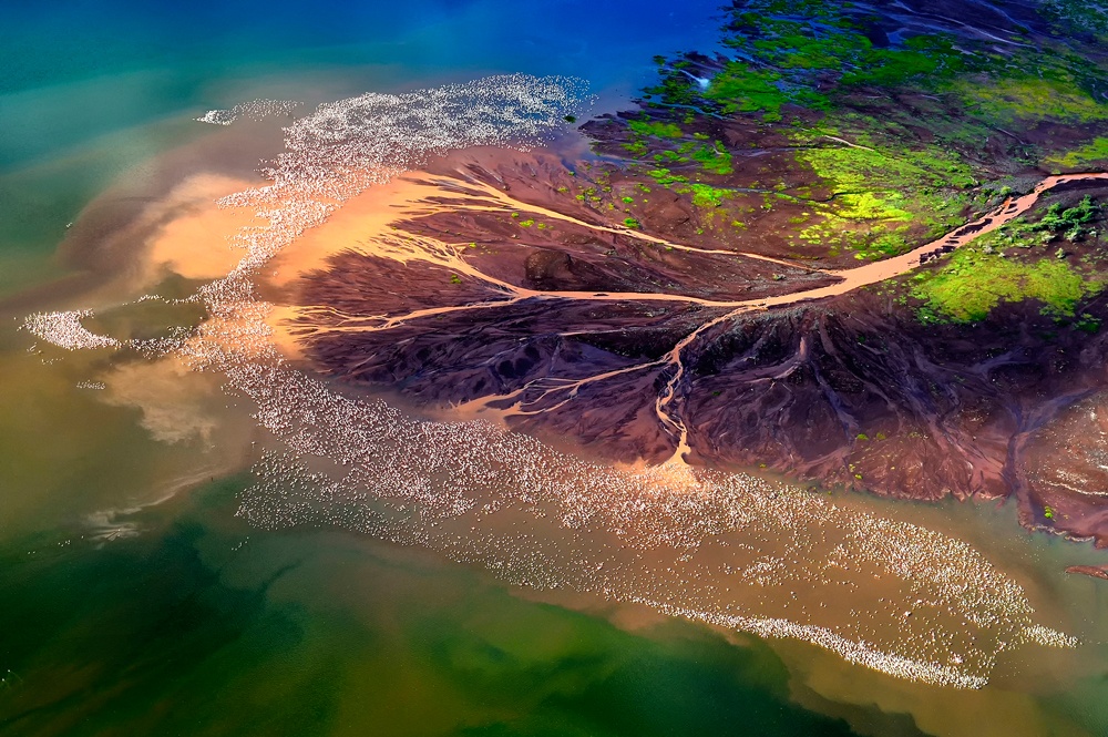 Lake Bogoria, a saline water shallow located in the northern region of the Kenyan Rift, and know as the most beautiful view in Africa. The lake is a superb scenary of hills populated by dry bushes, grasslands and riverine forest, framing the calm water populated by millions of flamingoes.