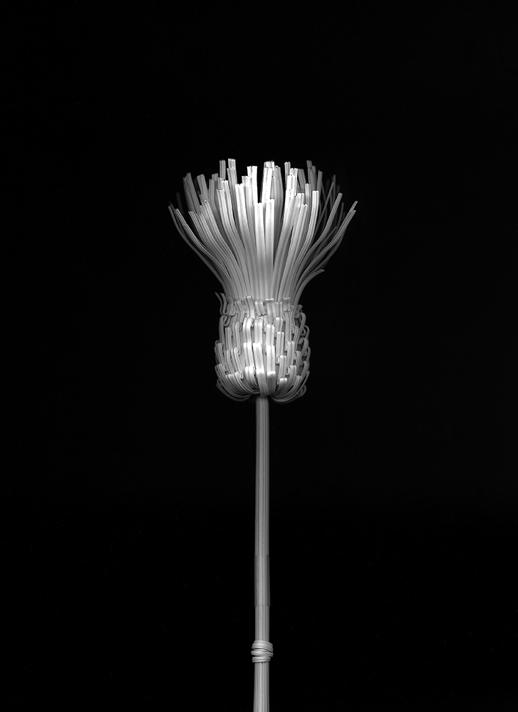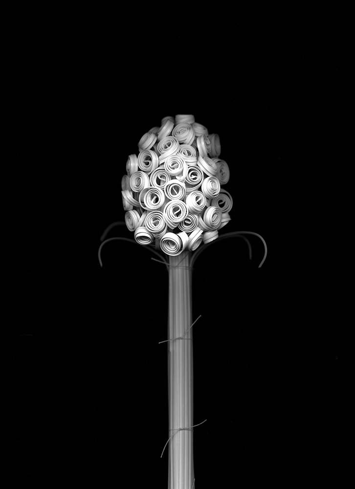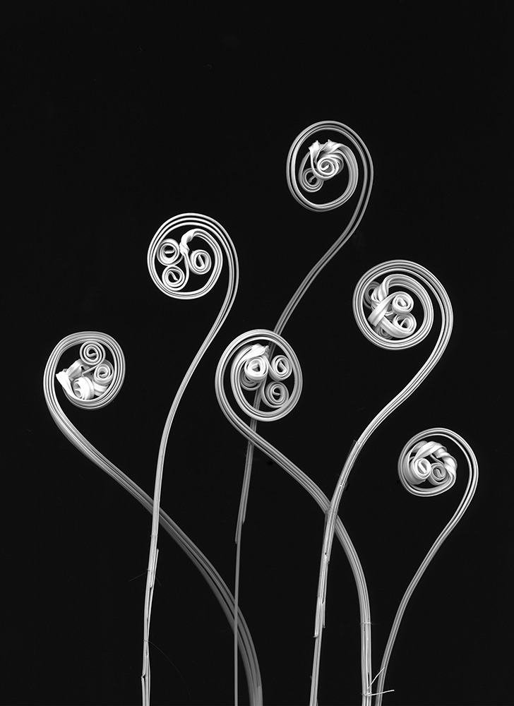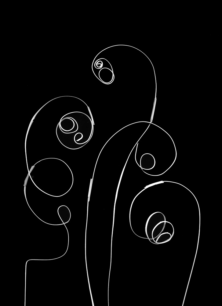 The objects are painstakingly hand made out of twist ties. They attempt to recreate some of the plant structures that were the subject of iconic photographs by the German artist/teacher Karl Blossfeldt in the 1920’s. The limits of working with such a humble material become the prime focus as the arrogance of attempting to imitate nature is shown in the subtle tensions between perfection and imperfection.