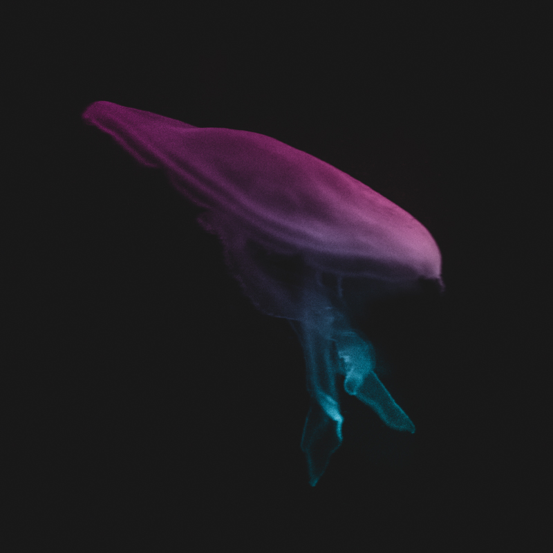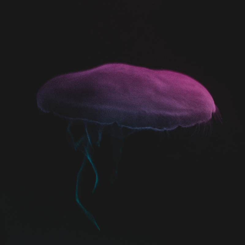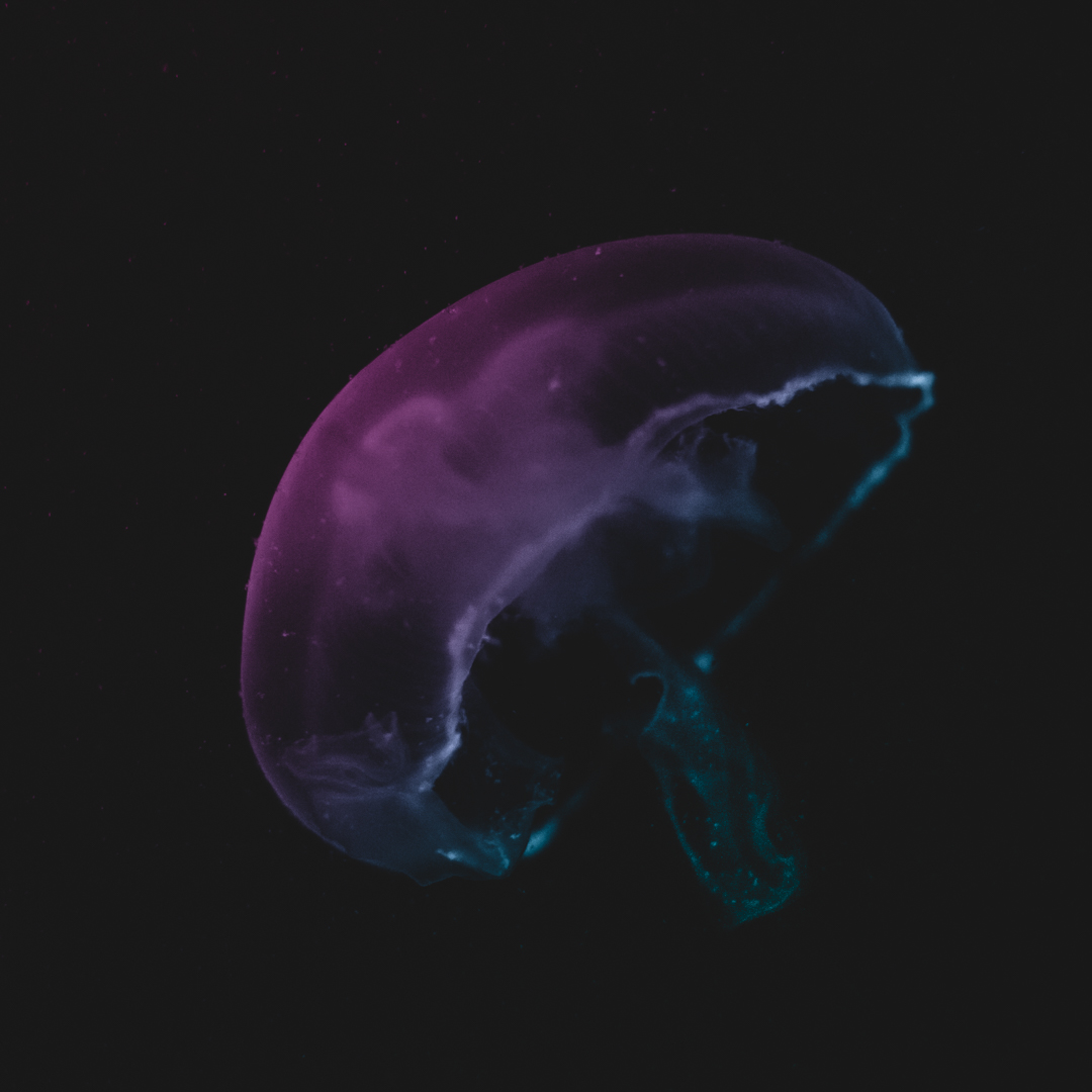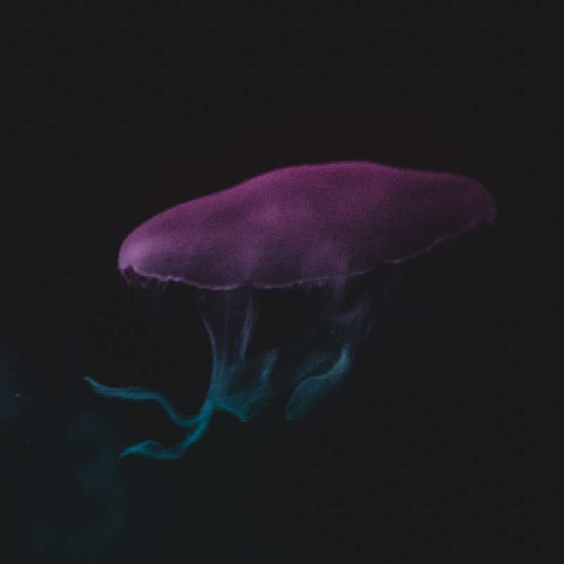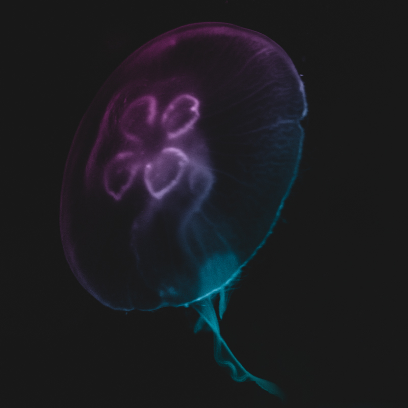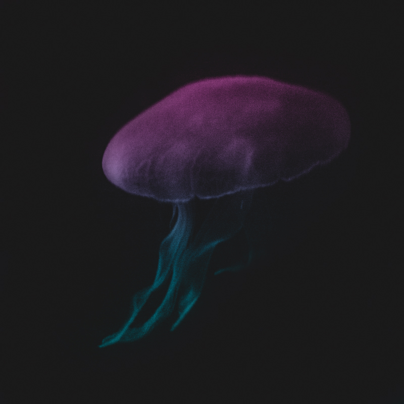 Disco-colored "portraits" of jellyfishes. The free dancers in the sea...
