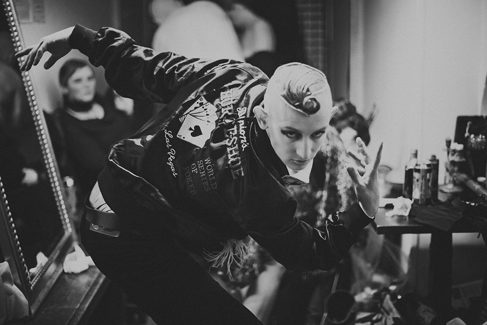 Cabaret Bizarre celebrates the unconventional and the bizarre. At that, Cabaret Bizarre orients itself at the grand theatres and variety shows of Paris and Berlin during the Golden Twenties. Glamour and glory and the atmosphere of old travelling menageries, vaudeville theatres and cabarets shall sparkle anew for a night. Cabaret Bizarre is a cabinet of curiosities, a freak show, a carnival of desires à la Brecht or Fellini. The work presented here originated mostly backstage and portrays brief moments of preparation and tension right before a performance or the instant of big euphoria after the show.