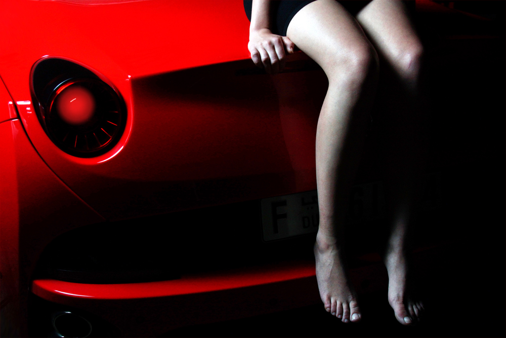 A study for an advertisement project of a Ferrari car. Credits to my friends: Anastasiia Dashkevych and Amir Khozeima who modeled for me, and to Sarah Kostandi for the makeup. I wanted to mix a traditional concept of advertising (hot girl in a hot car with the sexy legs) together with a more trendy presentation (the legs and the face with the red background)