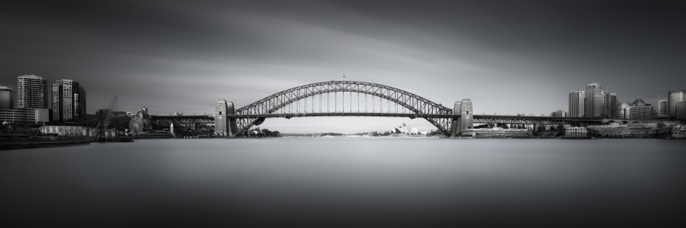 When architect design bridge structure, they never forget to prepare "Profile view" prior to various detail figures and drawings. I would like to prepare the Profile View accurately with a photography by using real bridges, Tokyo Rainbow Bridge and Sydney Harbour bridge by panoramic wide angle of view based on 5-min long exposure in order to emphasize the real bridge profile view from the abstracted sky and sea by the long-exposure.