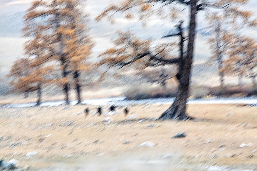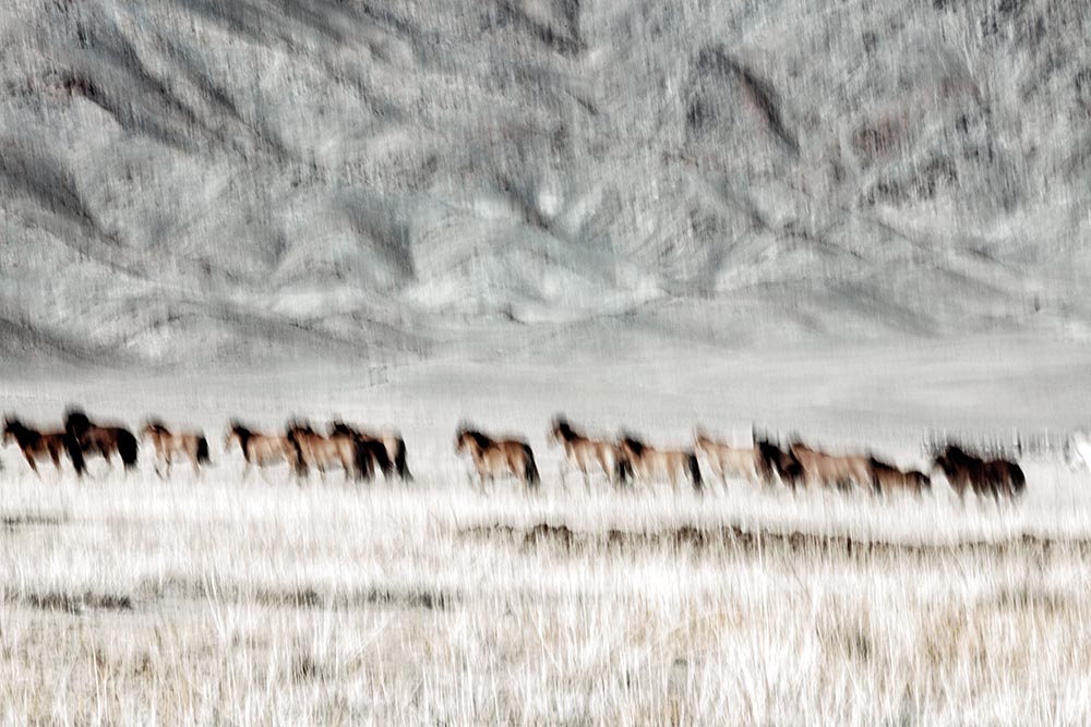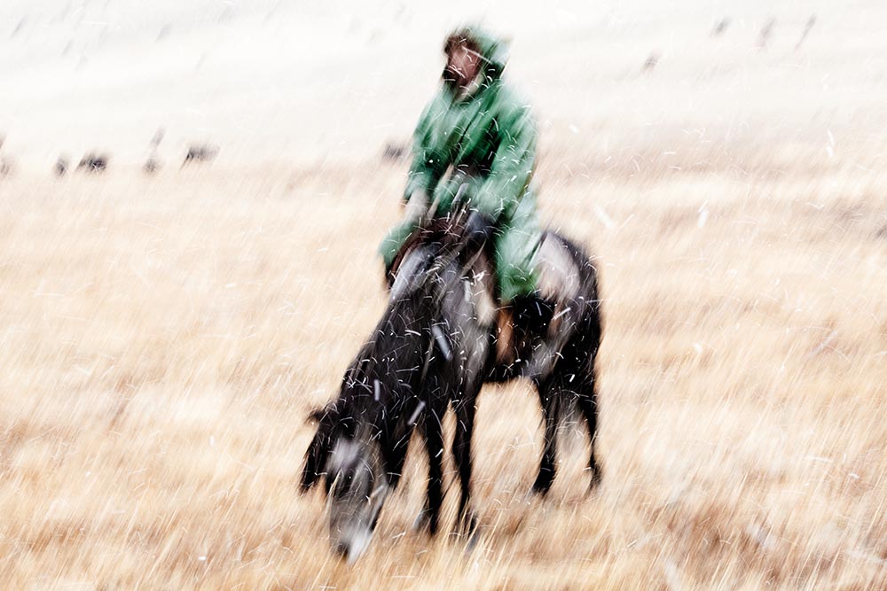 In this work Paolo Sollazzo astonishes us, as he leads us through the boundless horizons of a vast land, Mongolia. It is nature, harsh and uncontaminated, that is the real protagonist. A protagonist that dictates the rules, which the author at first seems only to bow down to, but to which he later becomes perfectly adapted. The cold, the rain, the snow, mountains, rivers, sparse trees and the desert, all these together delineate the borders of the author’s vision, they are the real protagonists of the narration. Herds at pasture or roaming wild, or the shepherds rarely met with, or the prodigious horsemen with their eagles, seem to be little more than extras. They occasionally appear to populate a white and empty landscape, a land, as I said above, harsh and sparely inhabited. We could call Sollazzo’s photography “Impressionist Photographyâ€. In fact, some images do bring to mind that great school of painting.