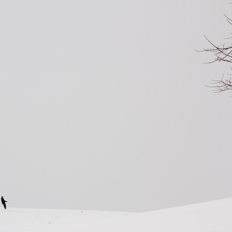 I am fascinated by the idea that white could symbolize timelessness and try to experiment with my photographs to explore more about the different possibilities of its representation. My aim is to show how the objects disappear into the white, or how you can fill in the white and how this visualizes different personal perceptions of time and the absence of time influence the way I take the the photos. All the experiments and researches circle around ideas how to visualise timelessness and relating to topics about silence, space, death and emptiness. I try to answer questions for myself, how do we perceive time, as it is a subjective experience and how is it related to the topics mentioned. The interaction between snow, white outs and fog for instance in nature visually plays a big role in the experiments and the photography turns around snow landscapes through there whiteness I try to visualise my personal perceptions gained through my researches. Time and the experience of death are very linked to me for instance: The idea of time is born with the knowledge of death. Furthermore space and time seem to be linked together in a way, that we feel to loose orientation in a white out for instance, as there is no space anymore, we could perceive. The presented personal perceptions of timelessness are all very subjective expressions of my inner self and my understanding of time mixed with concepts of time and space like the one of ma in the Japanese Art. I experimented with my photography and ideas that had built during my experiments with it: absence of space, a disappearing of an object in the depth of the photo, a white out, the layers of white, a collage into the white of a landscape, the reduction of the image to one idea, to visualise the idea through its abstract content, a Beckett scenery of the human being in the absurdity and finally a realistic perception of the snow landscape as a moment in time that is perceived as timelessness in the one moment I took the photo. ,