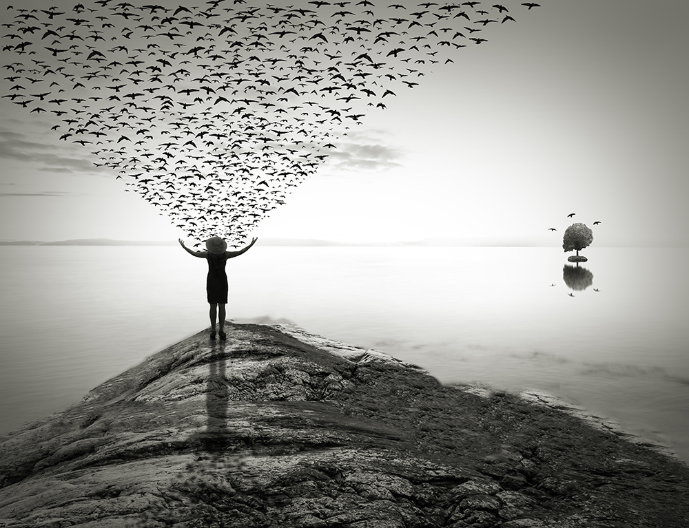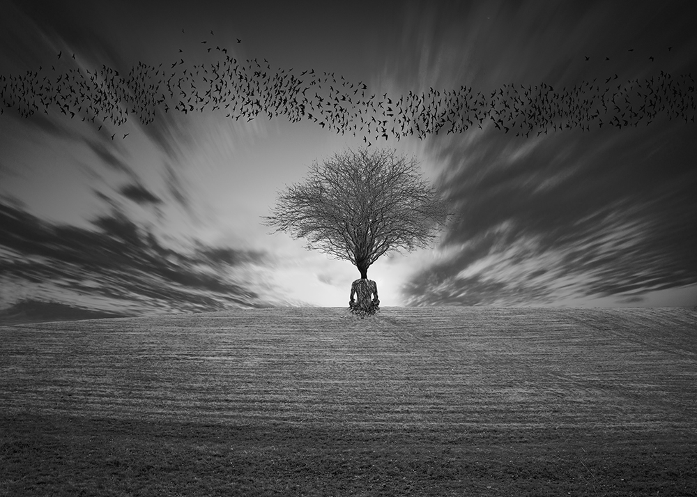 Human kind is still tied to different constraints in its mind mostly by virtual bond that have been created or indoctrinated. Since birds have always been a symbol of freedom and independency in Iranian arts and literatures, I intend to show that mind should be free to fly like birds, go beyond the boundaries and be able to escape from limitations. Trees in my work are used as a symbol of fixed position and stagnant condition but at the same time as an interface between human body/mind and the free world. Because mind can get free through the leaves and branches and fly as birds do the same for flying and sometimes rebirth.