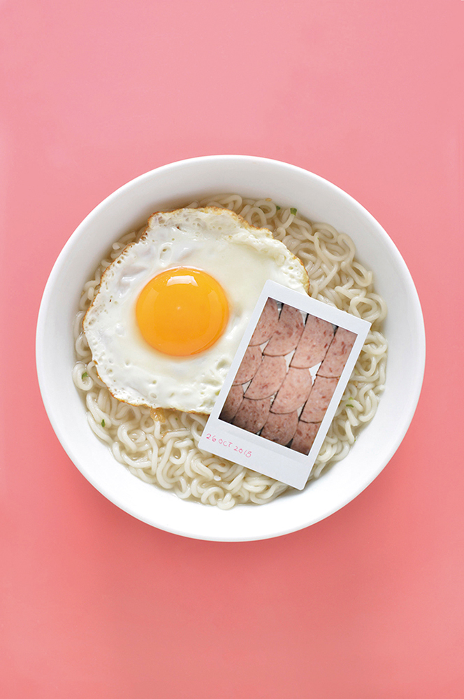 Everyone has their own comfort food which are able to improve negative emotion, releasing emotional stress and getting spirit consolation. My comfort food (processed meat) unfortunately became the A class of carcinogenic to be issued by World Health Organization in October, 2015. I was very shocked when I heard the news from TV. I totally enjoy eating my comfort food since my childhood. It is difficult to digest the bad news. Therefore, I take a series of comfort food photo such as hotdog, noodle with egg and luncheon meat, bacon roll with enoki mushroom and hamburger in which beside with processed meat photos shot by polaroid camera for expressing unbelievable news - uncomfortable food.