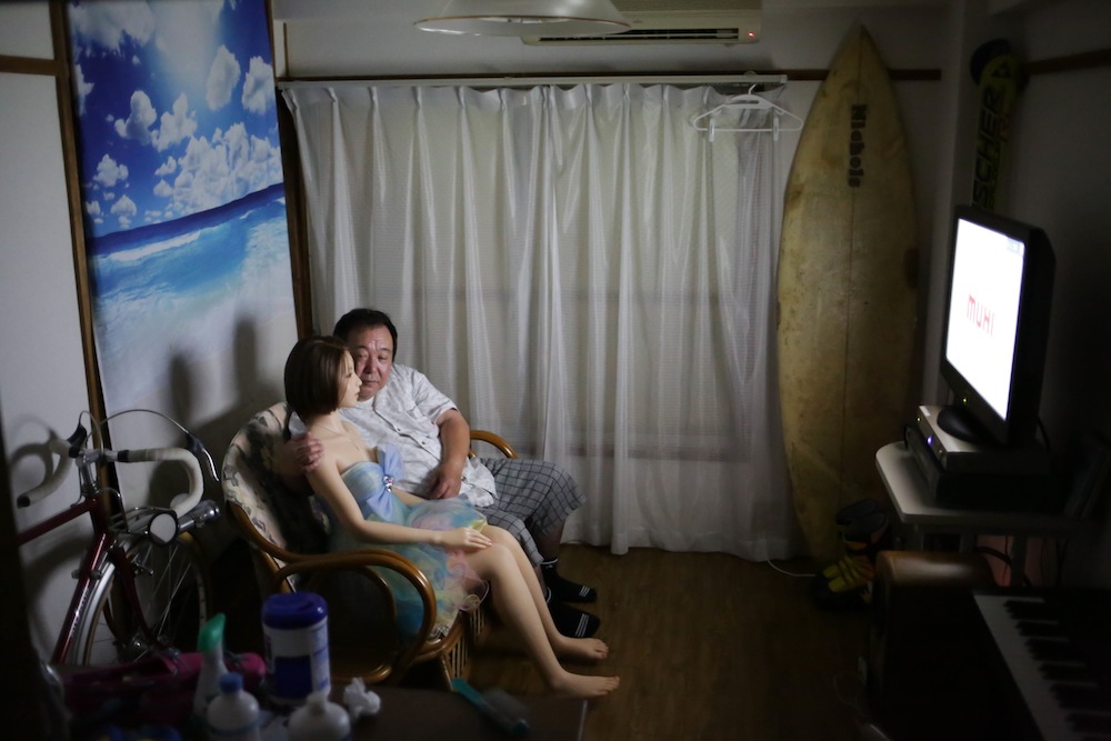 Senji Nakajima, 61 years old, lives with 'Saori' for six years in his apartment in Tokyo, Japan. They hang out, go shopping, sleep on the same bed. Although the only one thing different from any other couple is the fact that Saori, actually is a life-size 'love doll'. Nakajima, married with two children, who lives away from home for work, first started his life with Saori six years ago. At first, he used to imagine as if the doll was his first girl friend, and used it only for sexual purposes to fill the loneliness, but months later, he started to find Saori actually has an original personality. 'She never betrays, not after only money. I'm tired of modern rational humans. They are heartless,' Nakajima says, 'for me, she is more than a doll. Not just a silicon rubber. She needs much help, but still is my perfect partner who shares precious moments with me and enriches my life.' The trend for intimate relationships with silicone dolls, which cost up to 600,000JPY (app.6,000USD) has been rising across Japan.