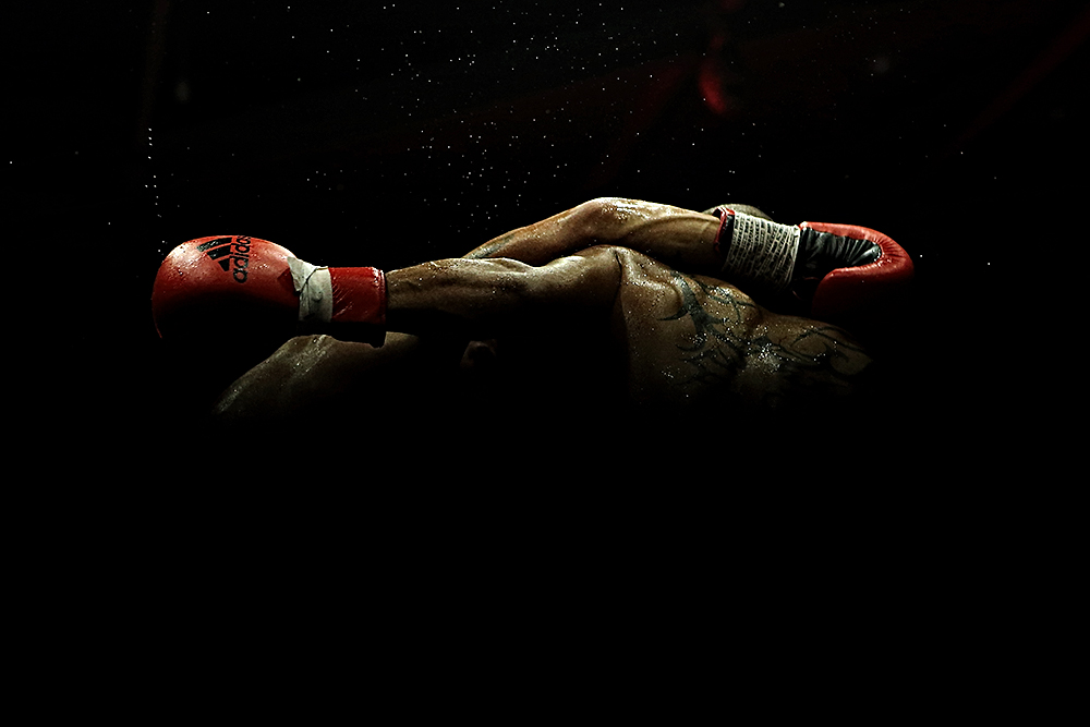 Maltese professional boxer Steve Martin (left) and his opponent Italian boxer Roberto Mellone (right) gets entangled in a fighting “hug†in a professional boxing fight which took place in Malta in August of 2016 under the auspices of the Malta Boxing Association.
