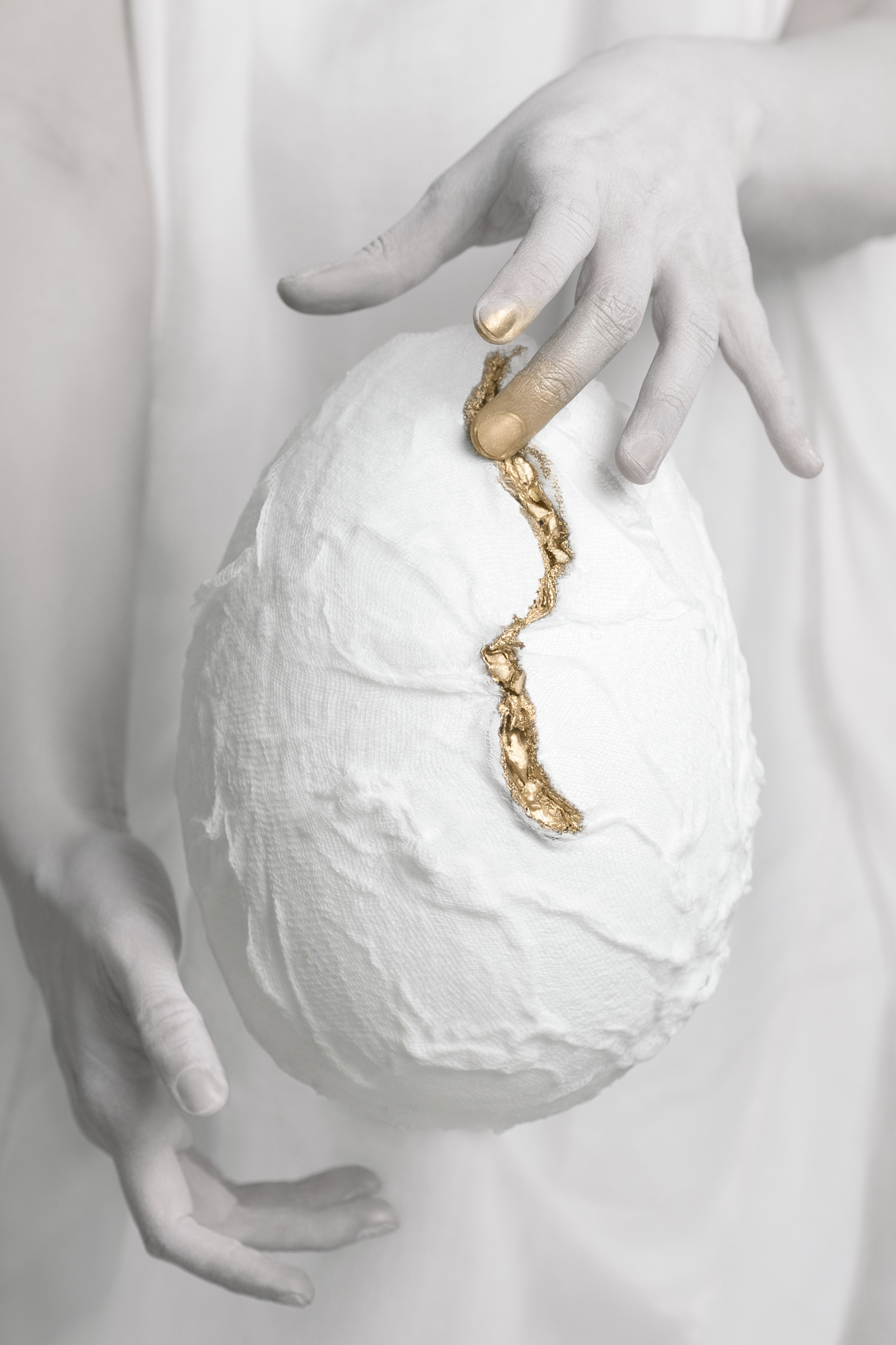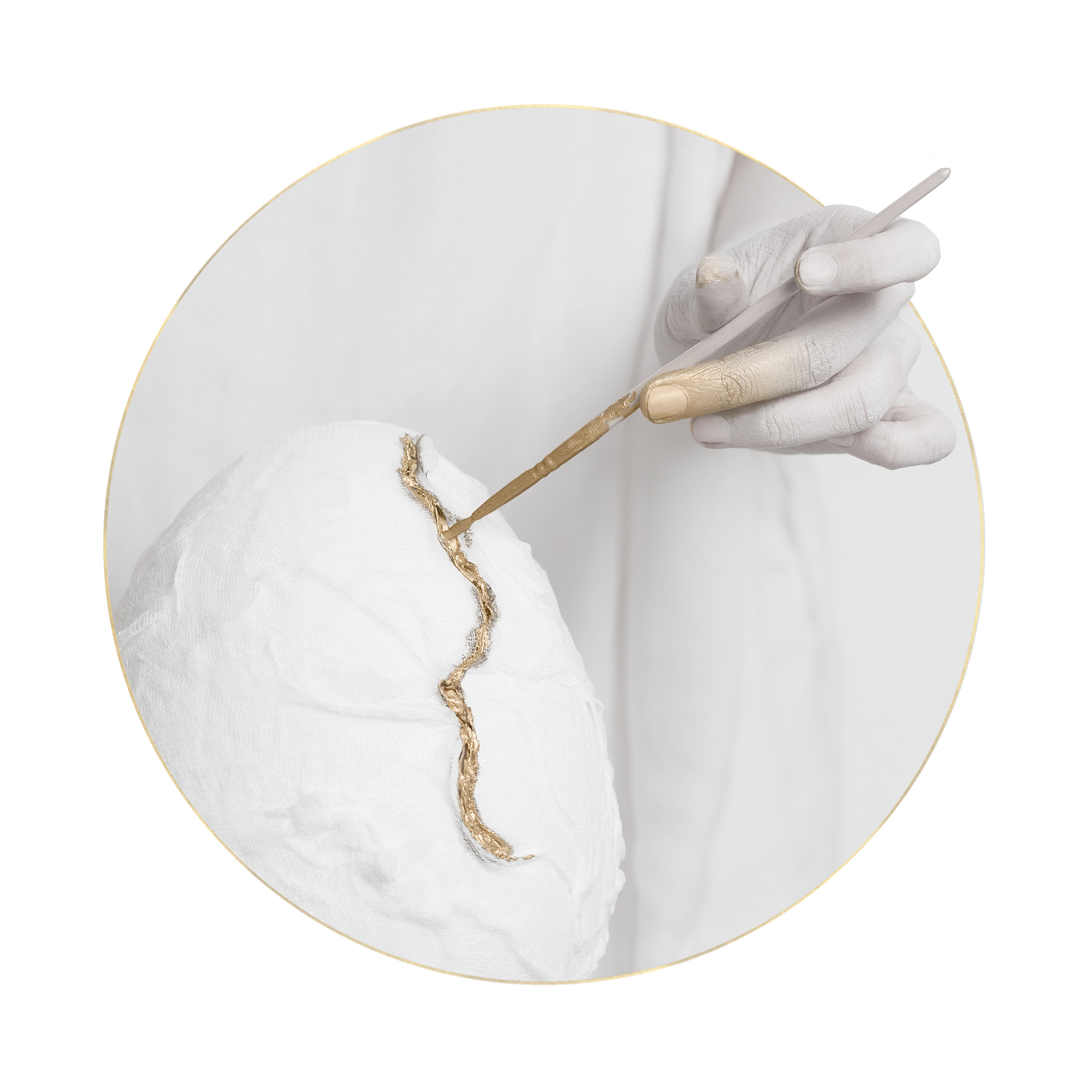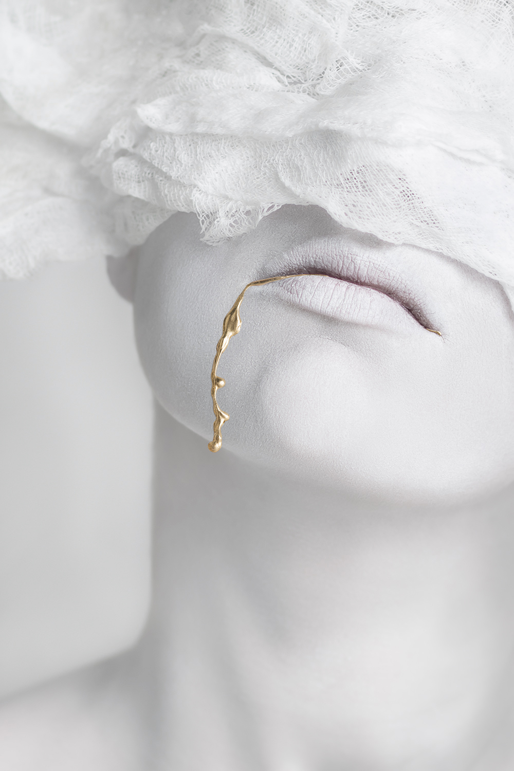 "Kintsugi - riparare con l'oro" is a self-portrait project. It is about celebrating the battles the soul has come through, accepting and honoring the scars that testify to how it has been shattered and has come together as more complete and precious. The title is borrowed from the ancient Japanese technique of repairing porcelain vessels accentuating the cracks with gold instead of concealing them. Gold foil is applied by hand at the end of the printing process. "Kintsugi" is part of a wider ongoing project on rebirth called "Rinascimenti Privati", that could be translated as "Private Renaissances". In Italian Rinascimento means both "rebirth" and the Renaissance, an era that witnessed the flourishing of the arts and intellectual activities after the Middle Age.