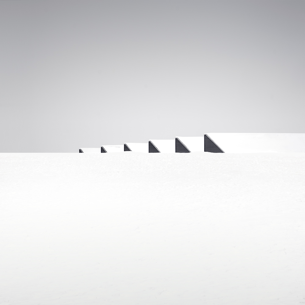 A minimalistic series of different kind of buildings in rural winter landscpaes.