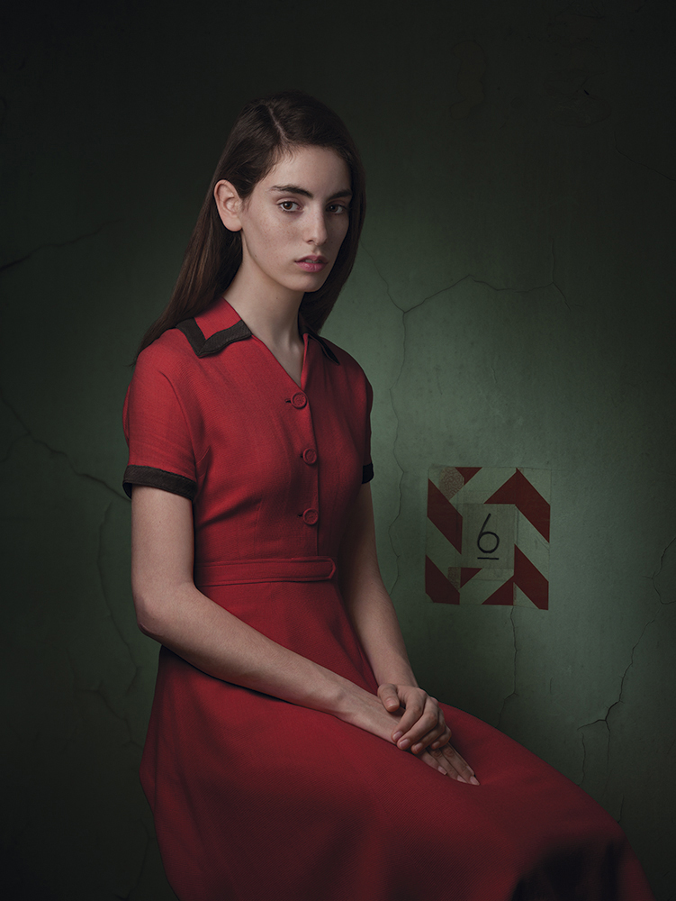 An innocent girl looks into a room where a chair is waiting for her. The setting is one of abandonment and melancholy with a number and even a hint of a swastika on the wall. How to cope with the burden of a tragic history? The premises of a sanitarium fallen into disuse in which the girl appears have survived both WWI and WWII. Hitler was treated in this hospital during both wars. The life of a Jewish girl wasn’t worth anything during this tragic war, she was just a number… With the Jewish girl portraits I want to explore the contrasts between beauty and transience on the one hand and atrocities of deportation and extermination on the other.