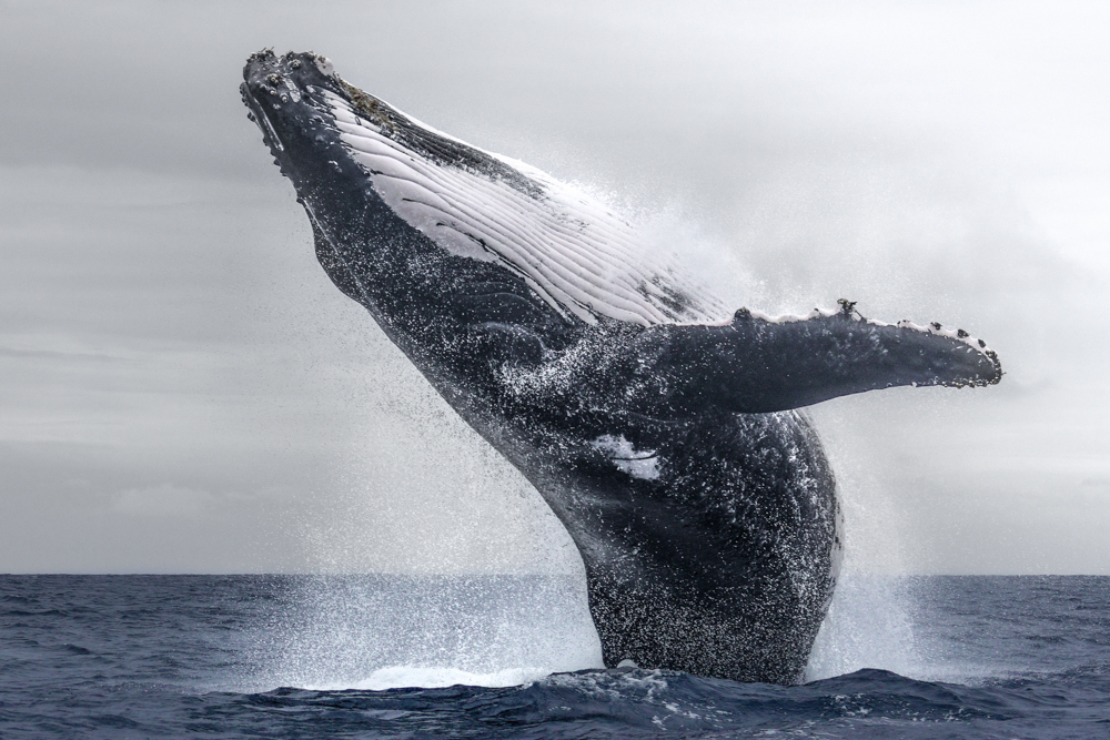 A female whale teacher her baby how to jump, at the same time demonstrating the beauty of nature.