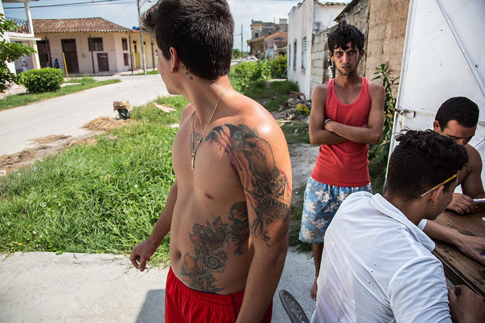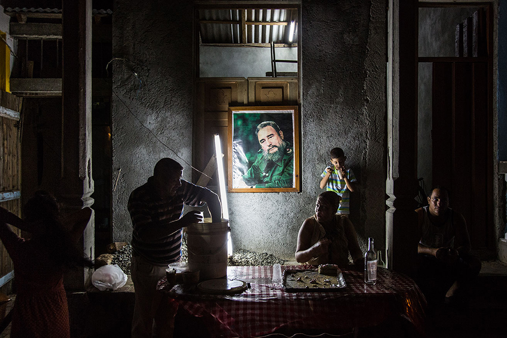 This project is about the Cubans, a developing society projected towards innovation but not fully conscious of what progress often implies in terms of sacrificing someone’s identity. I will show you the inherent contrast: an improvised celebration of Fidel's birthday, a mere neon light to illuminate his effigy, and two young artists opposing the regime through their art. Kids playing in a cemetery while an ex-con rejoices in his newly gained freedom. Two lovers ignoring each other, head-deep in their screen, while older Cubans share the day’s events outside their houses.
