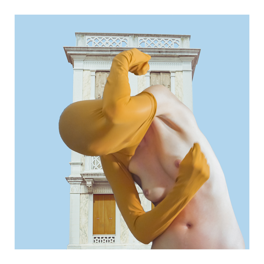 In this series of photographs I portrayed myself, overlaying my own body to some places where I wish I could have stayed for a longer time. Those places I shot and that are now in the background are some of the environments I encountered during my trips through Italy, Spain, France and Greece, plus one which I photographed in a cruise ship. Postures are often clearly unnatural and express my unease in relating to the outside world, seized by a feeling of unsuitability. Chromatic harmony between me and the buildings represents my need of taking part of the world I am surrounded by, despite I can never really feel myself into the environment all around me.