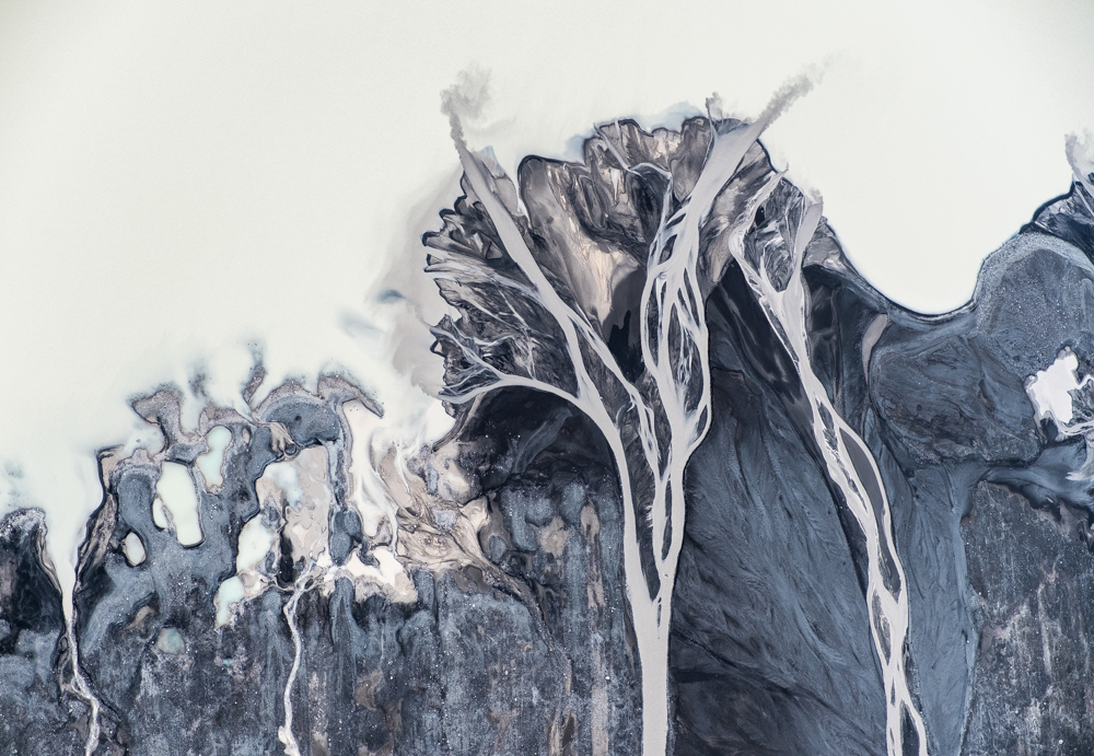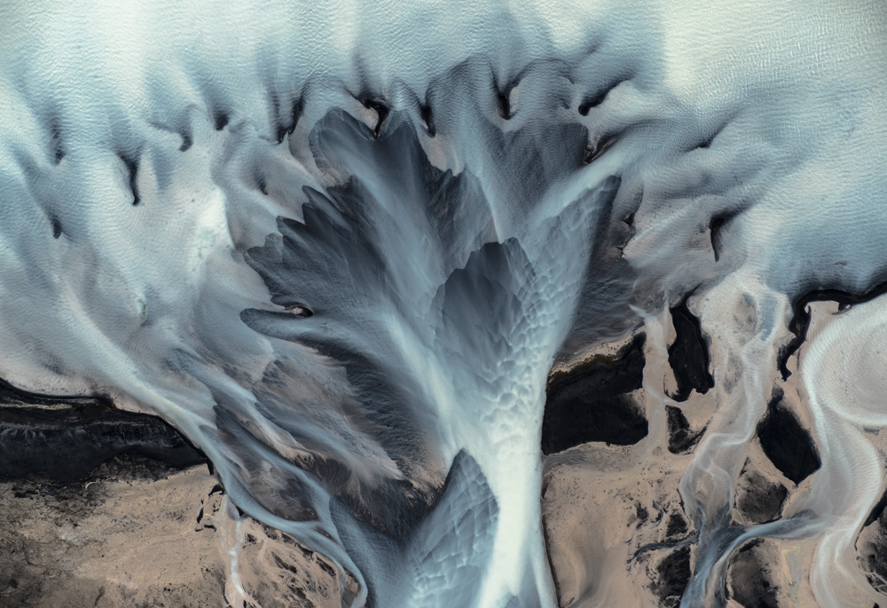 Aerial shots of Icelandic glacial rivers patterns